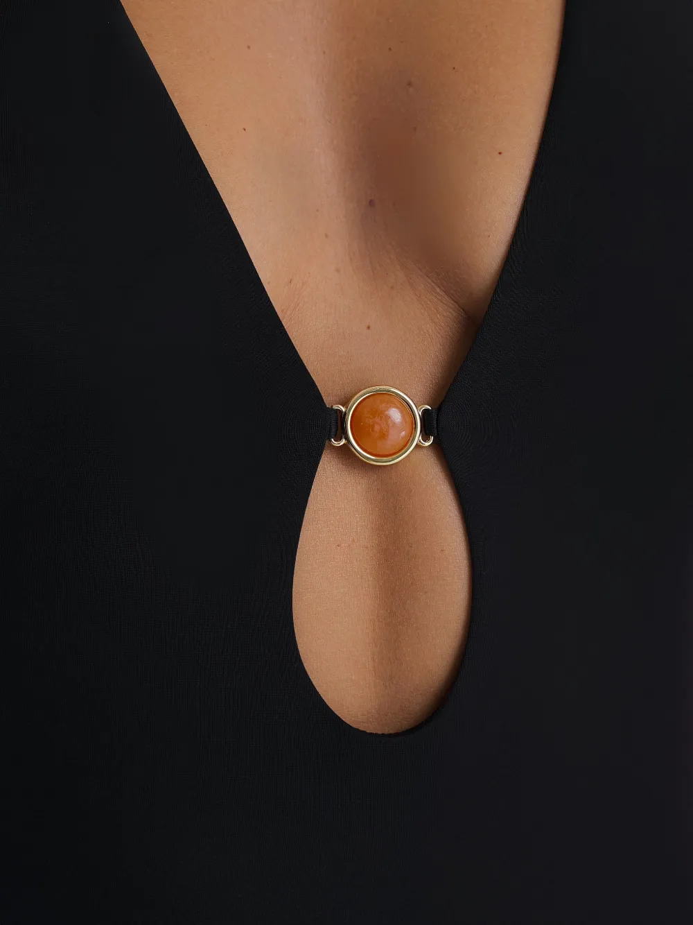 Черный купальник с бретелью на шее. Помните, что купальники следует примерять поверх собственного белья.