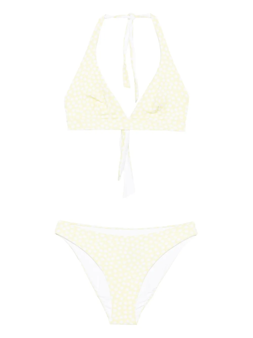 Бикини в горох с вырезом халтер Fisico, зеленый