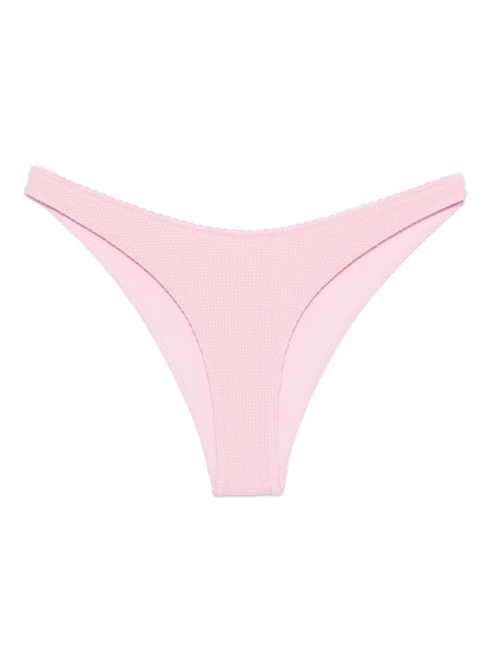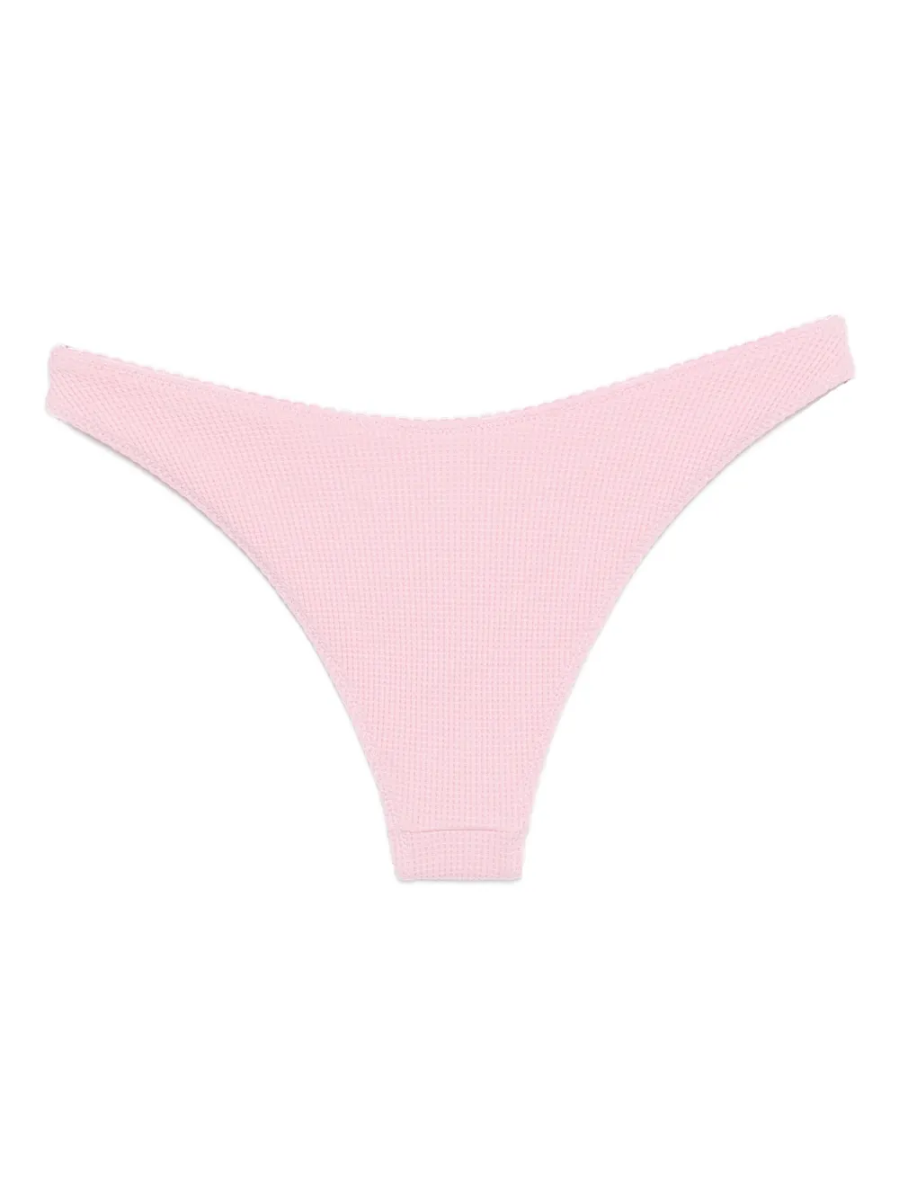 Приглушенно-розовый цвет, текстурированная отделка, заниженная талия, минимальное покрытие. Пожалуйста, примерьте купальник поверх своей одежды.