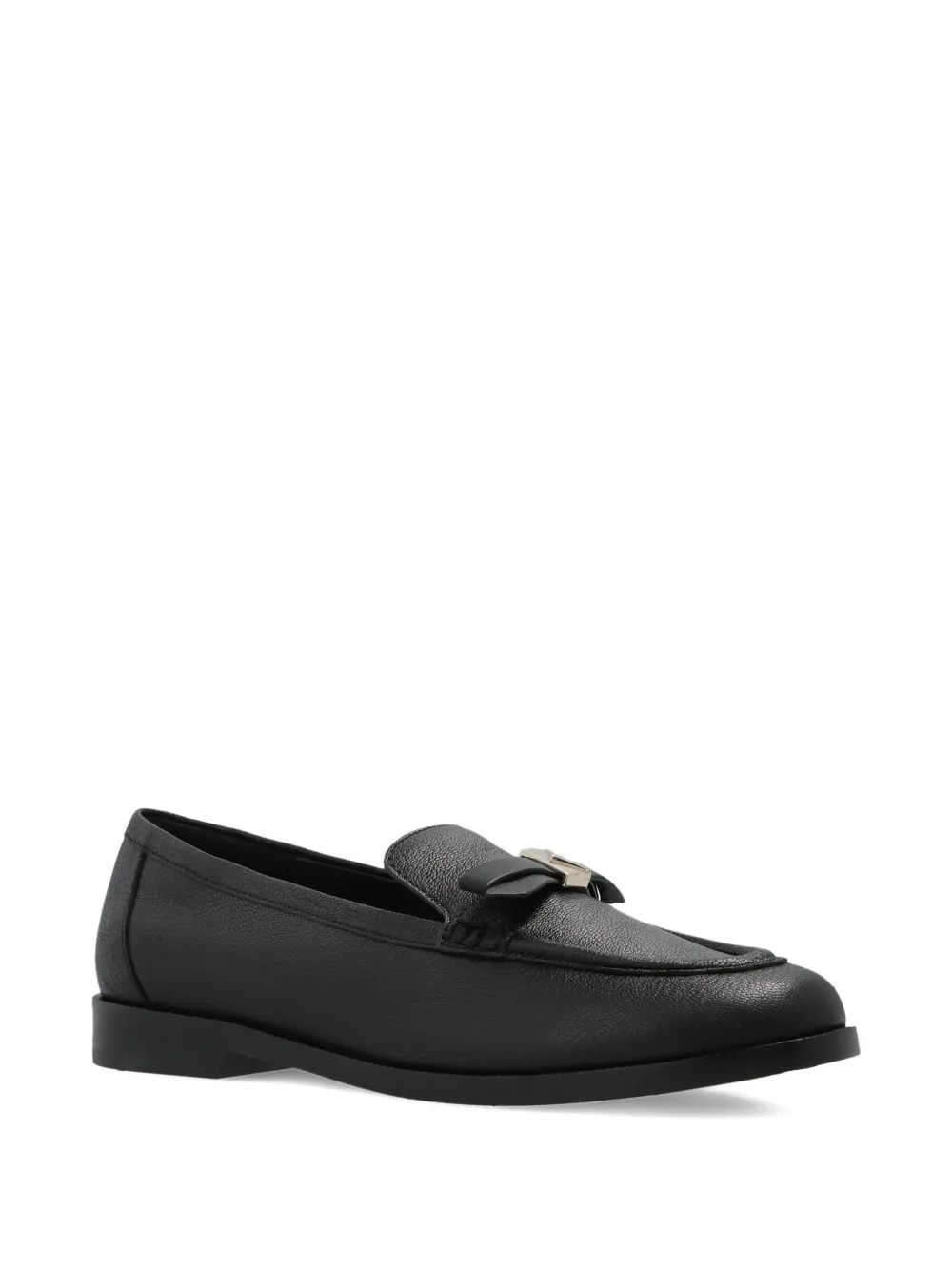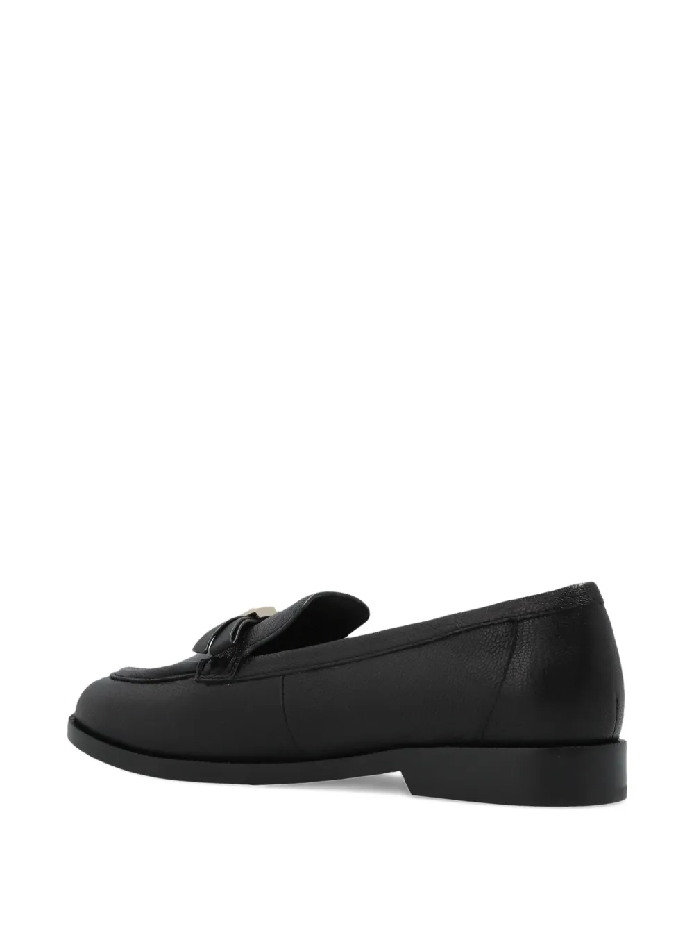 Черный бант, круглый носок, плоская подошва, тональная строчка, зернистая текстура
