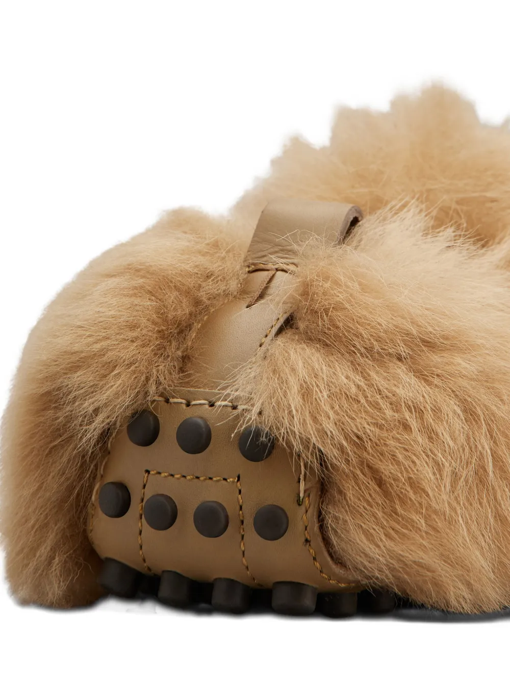 Коричневый верх из овчины, присборенный край, кожаная подкладка и стелька, задняя петля