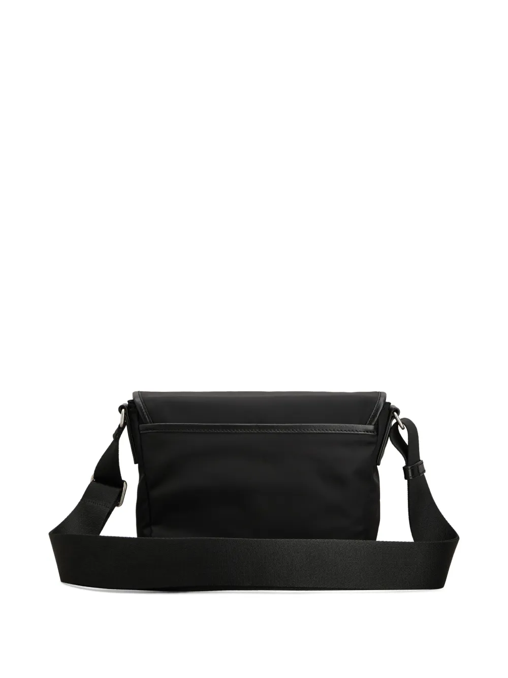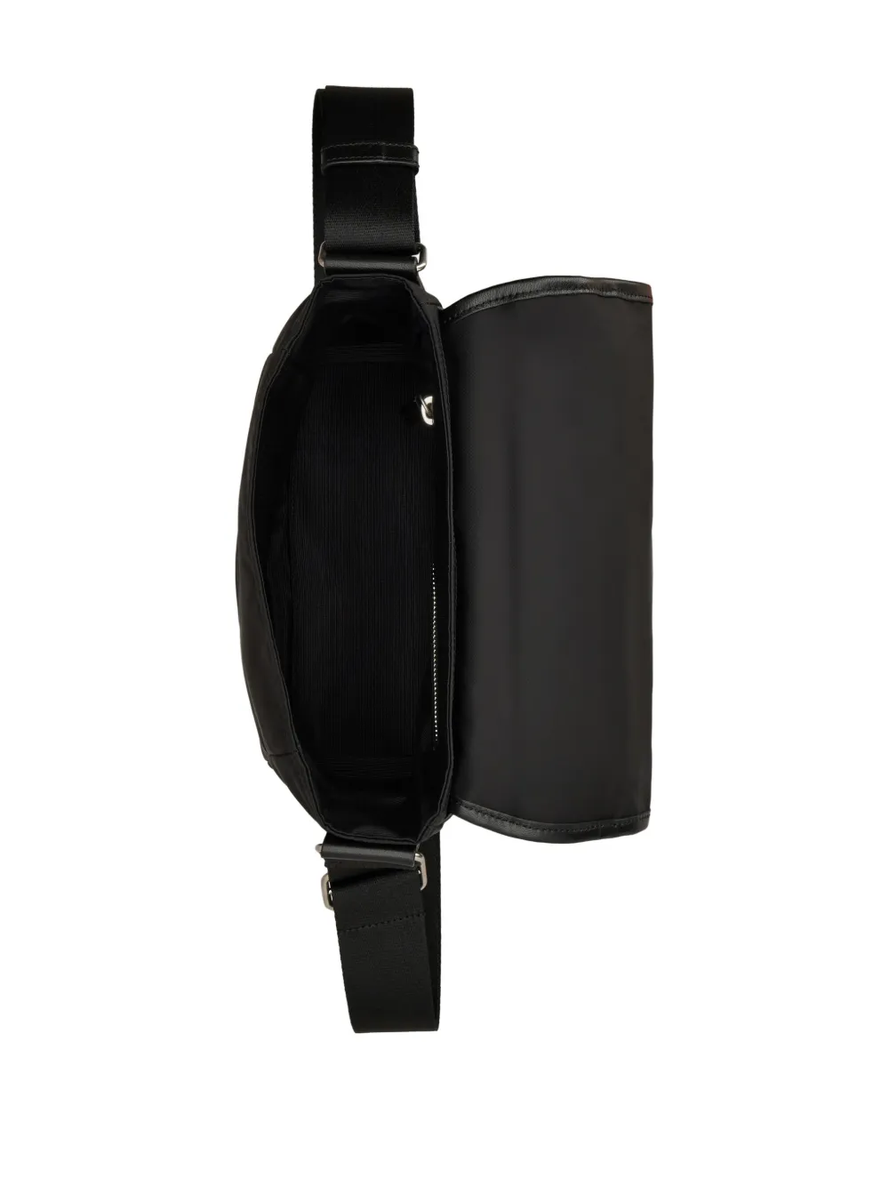Черный регулируемый плечевой ремень, передний клапан, застежка-пряжка, тональная строчка, тисненый логотип спереди