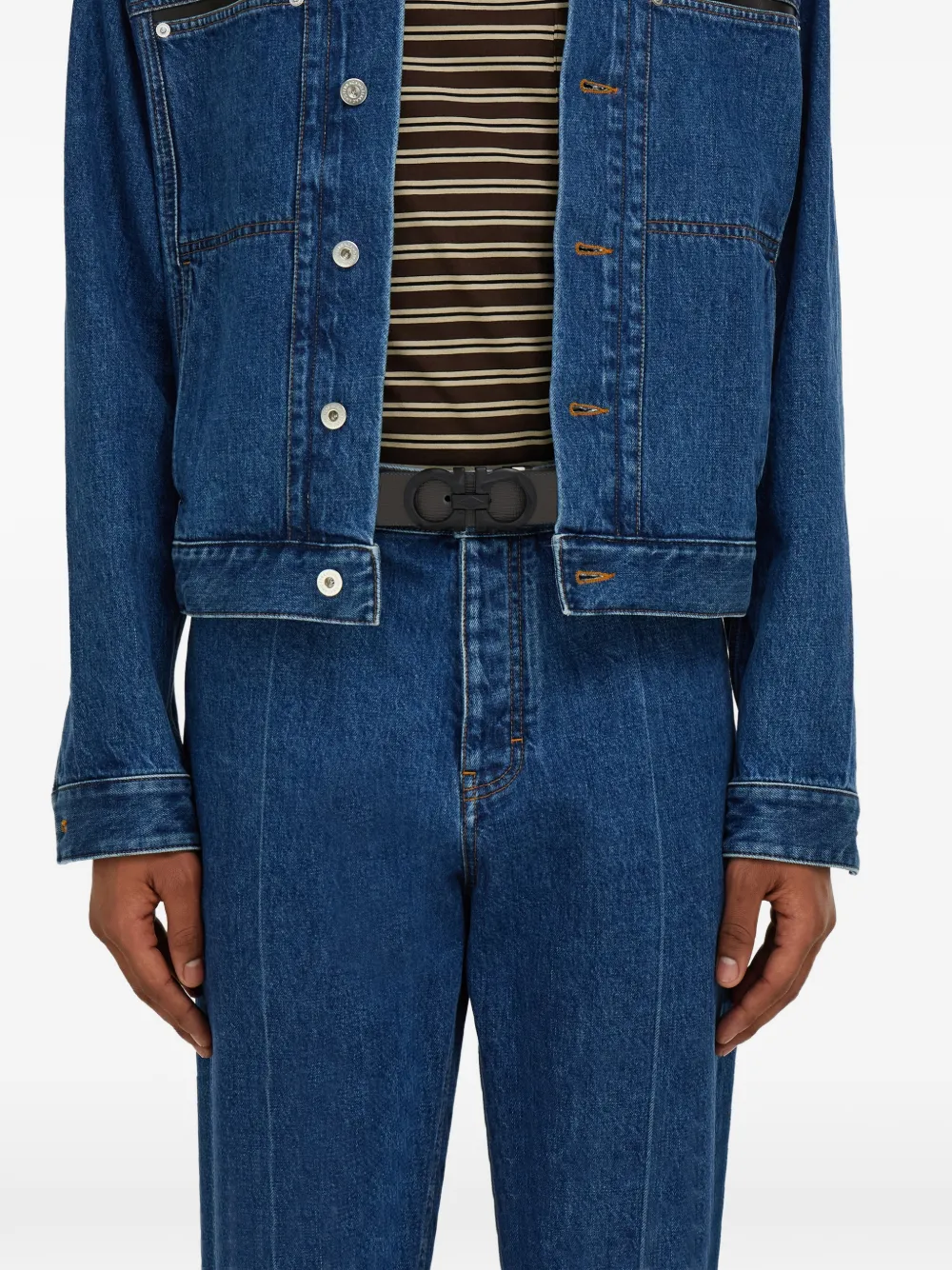 Двусторонний ремень с декором Gancini Ferragamo, серый