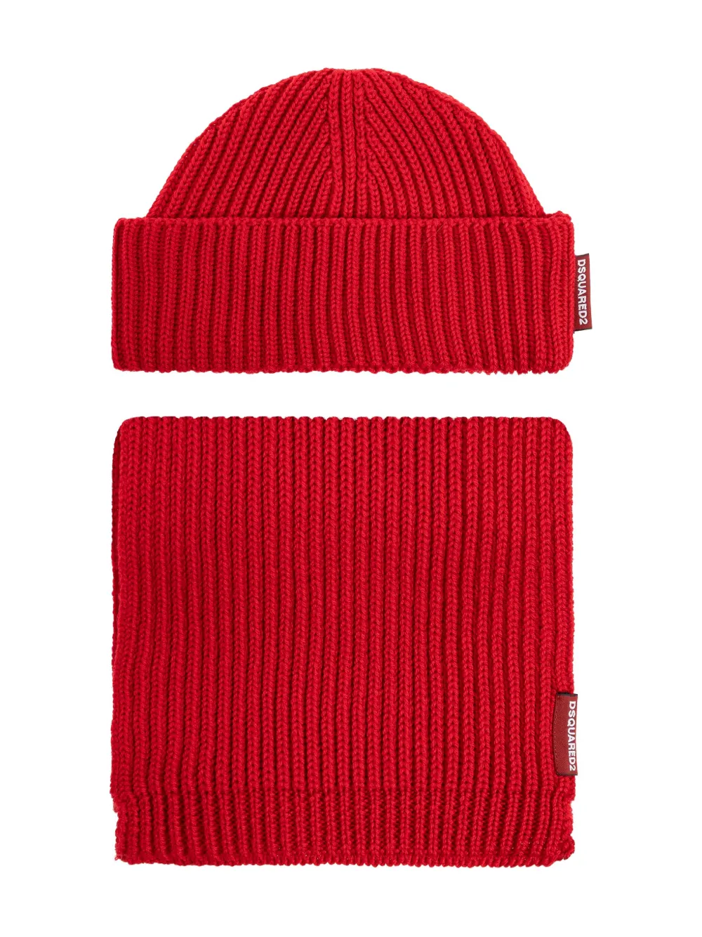 Набор: ребристая шапка и шарф Dsquared2, красный