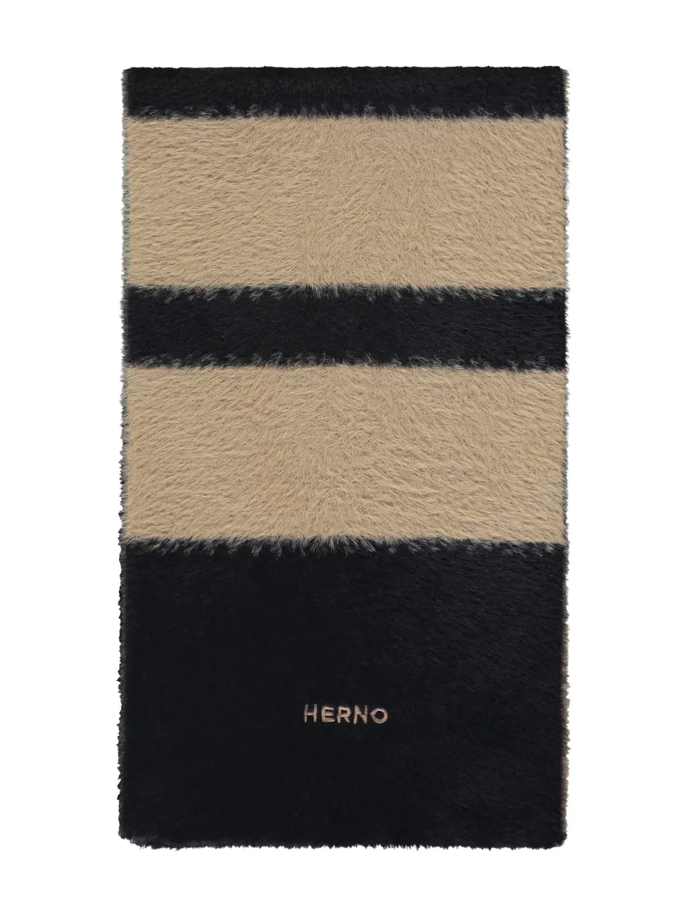 Полосатый шарф с жаккардовым логотипом Herno, черный