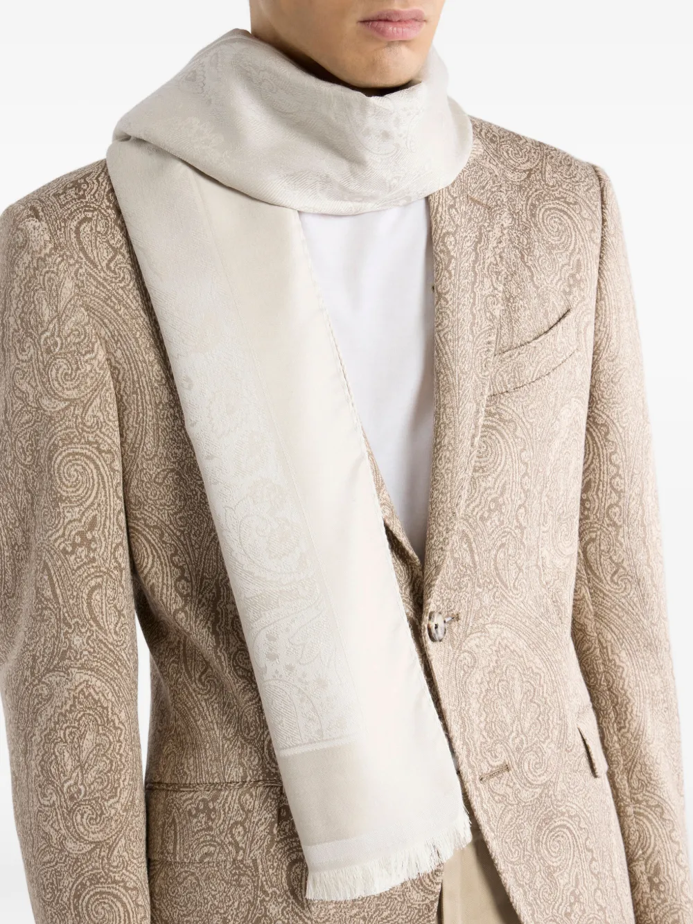 Нейтральные тона, узор «пейсли», бахромчатый край
