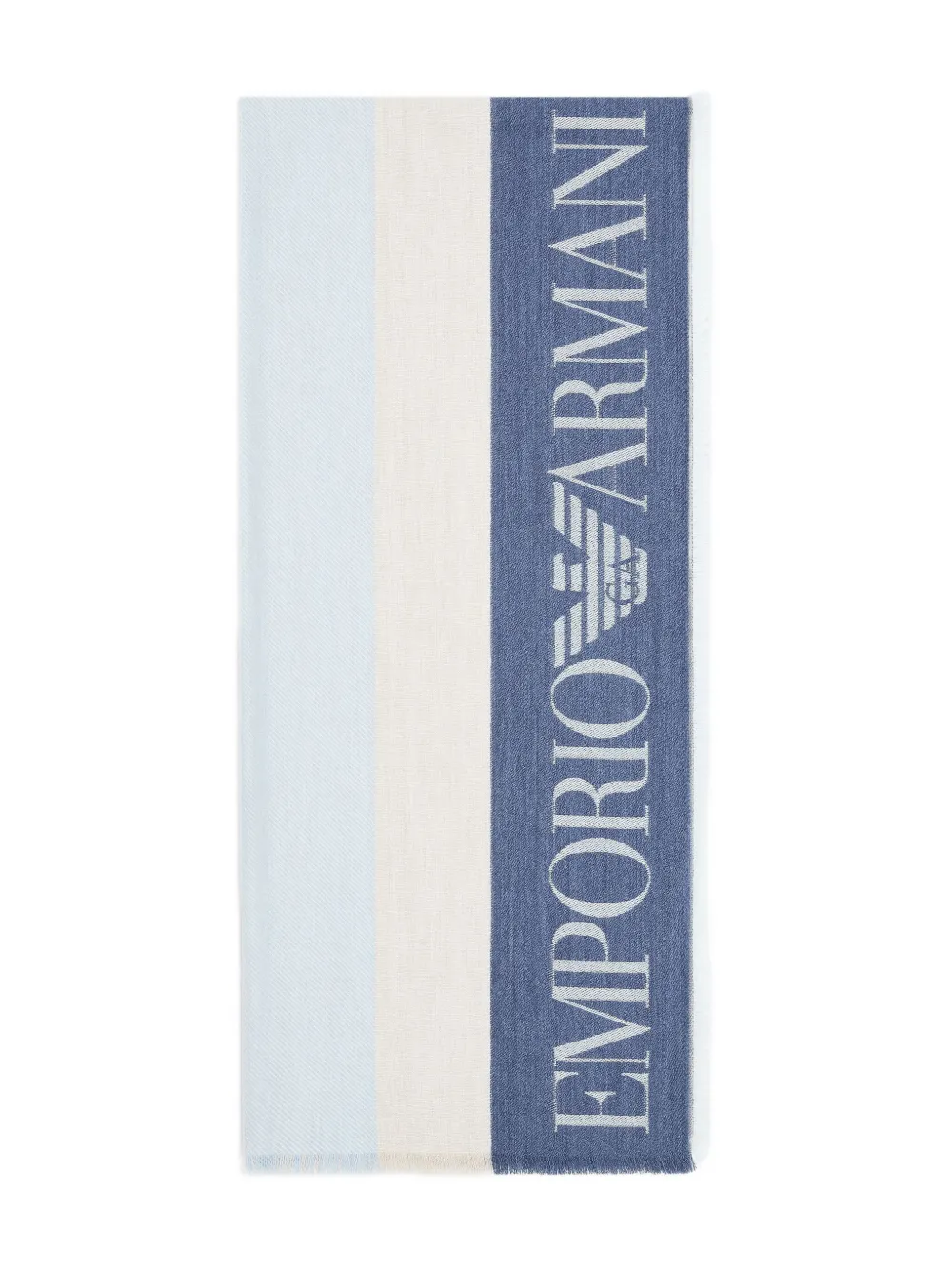 Полосатый шарф с логотипом Emporio Armani, синий 14 899₽