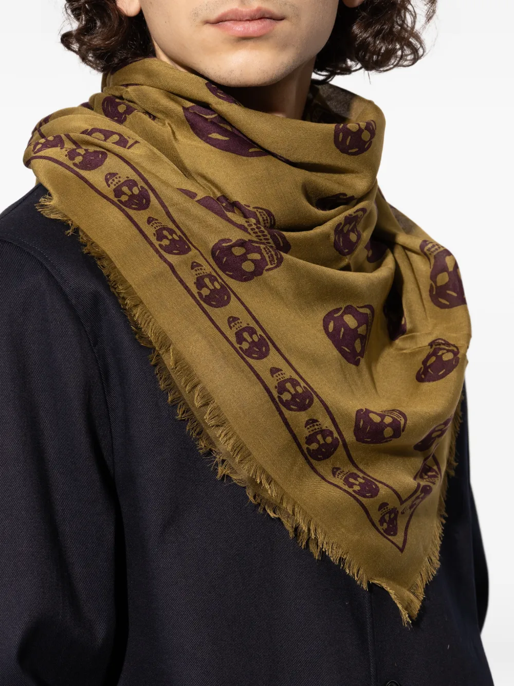 Коричневый шарф с принтом черепа и необработанным краем