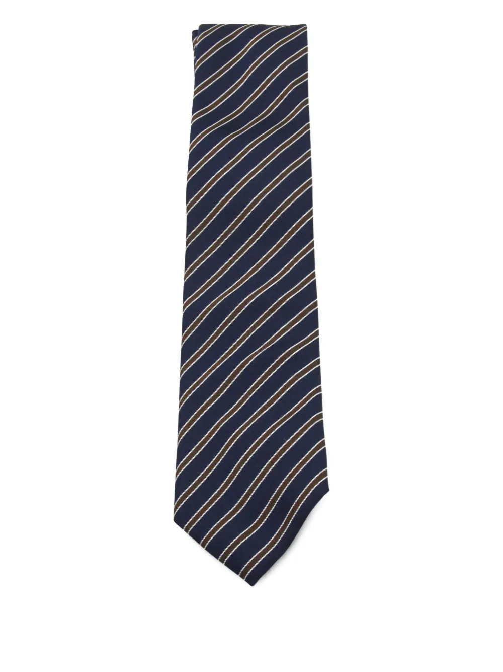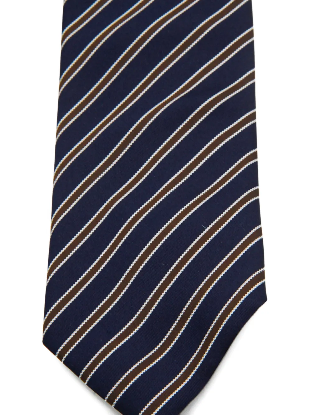 Темно-синий цвет, диагональный узор в полоску, коричневые полосы, полосы цвета айвори, заостренный конец, шелк