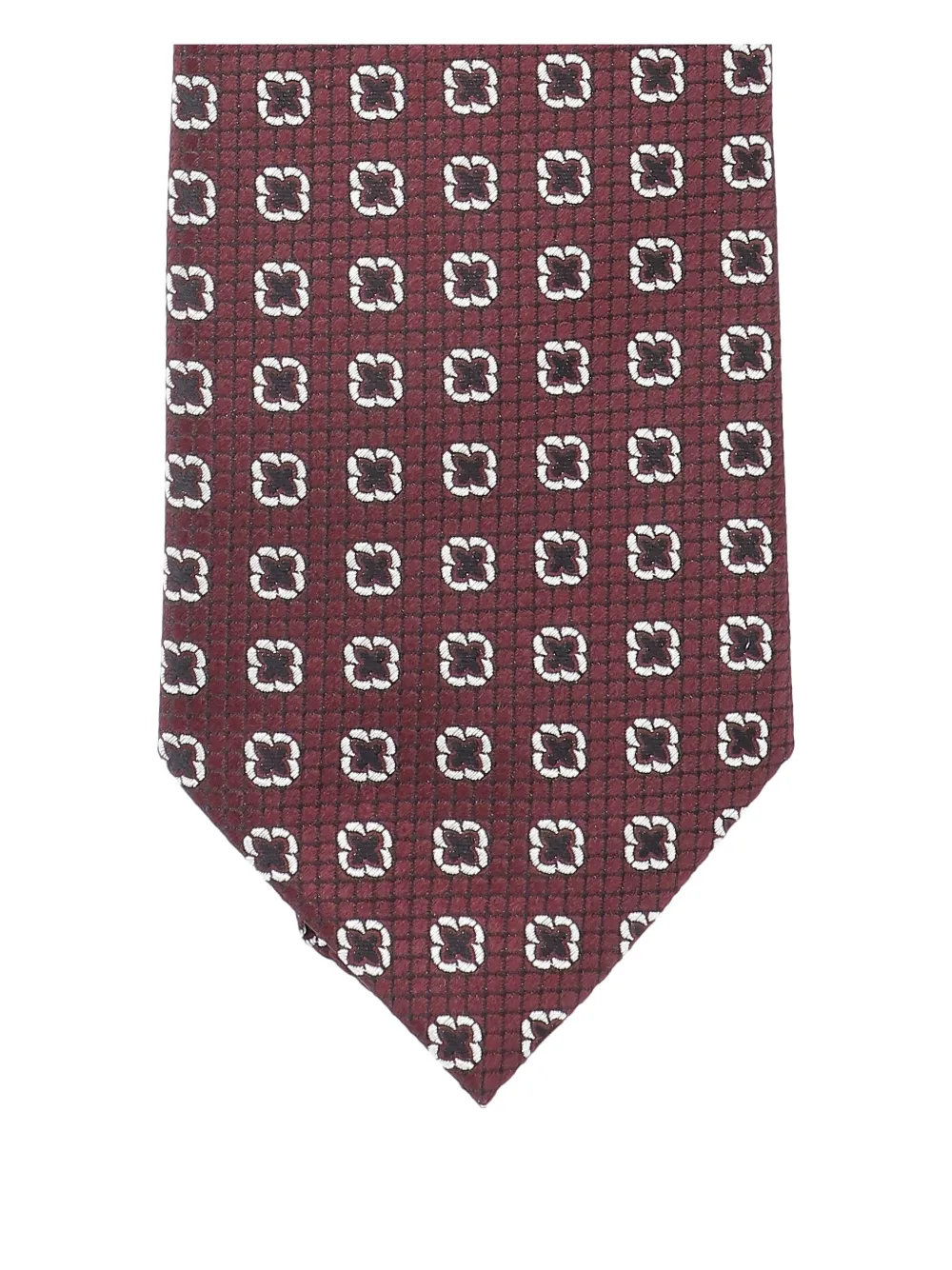 Коричневый галстук с цветочным и клетчатым узором, заостренный конец