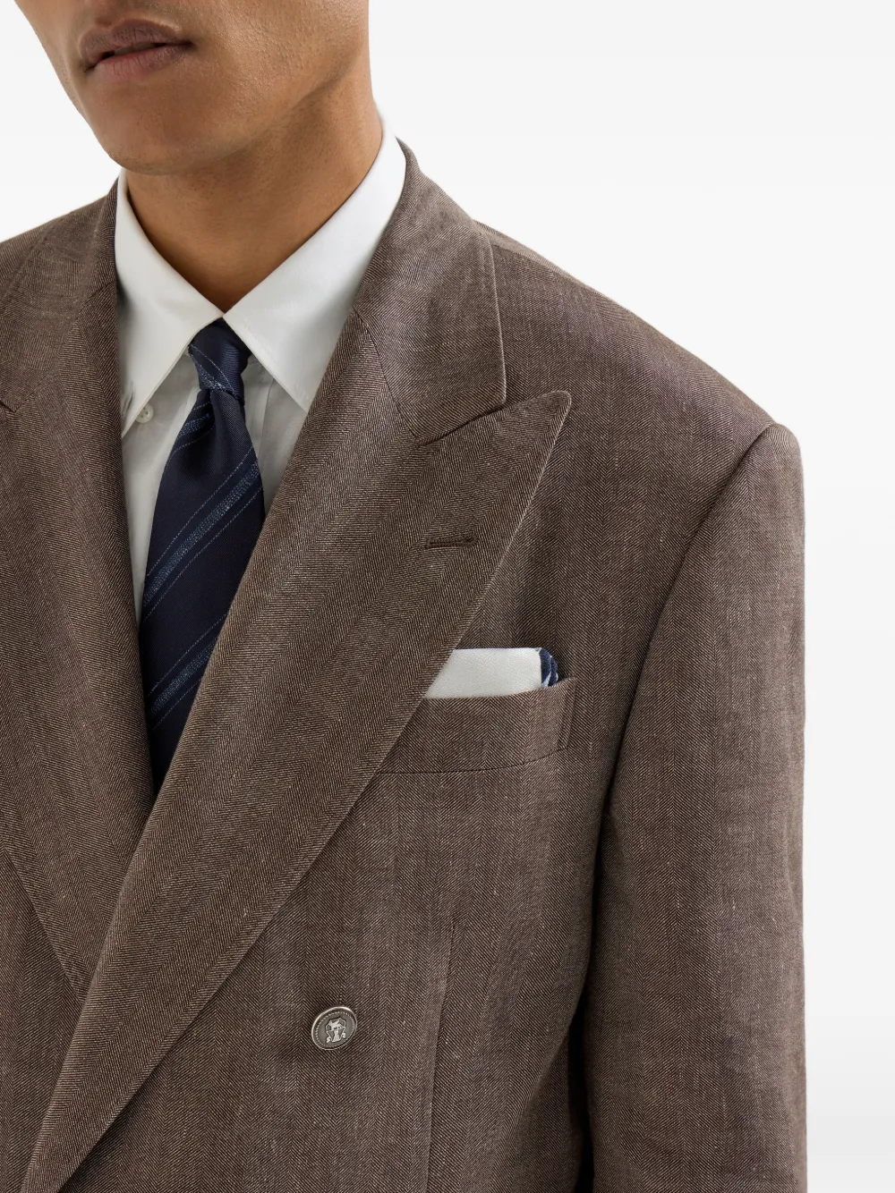 Шелковый платок с полосатой отделкой Brunello Cucinelli, синий