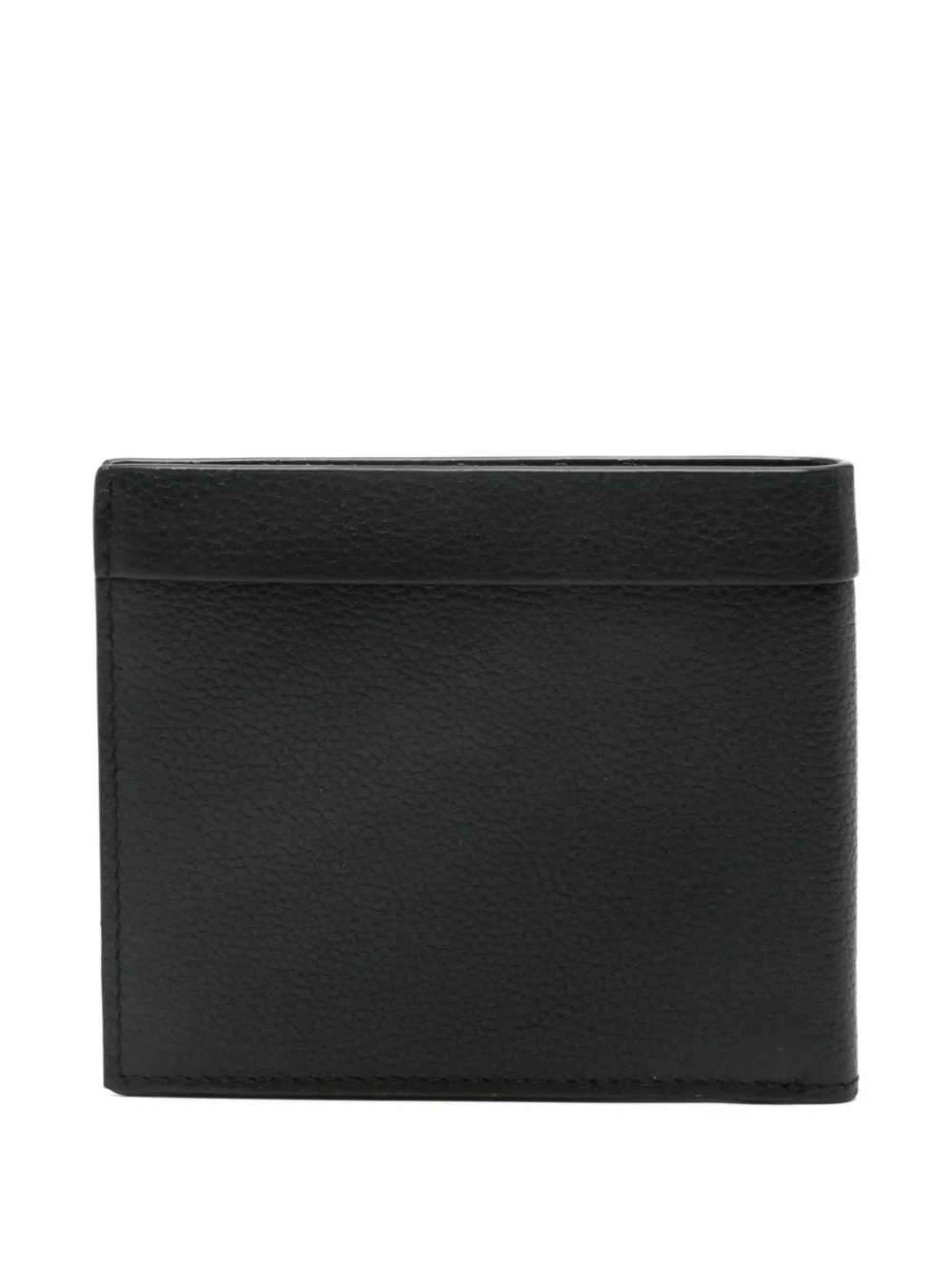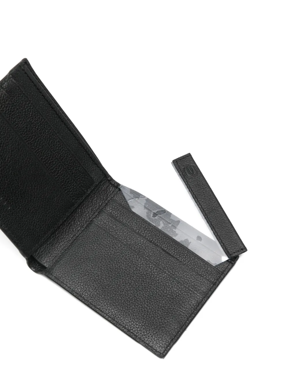 Черный кошелек с зернистой текстурой, складывающийся вдвое, с внутренними отделениями для карт и купюр