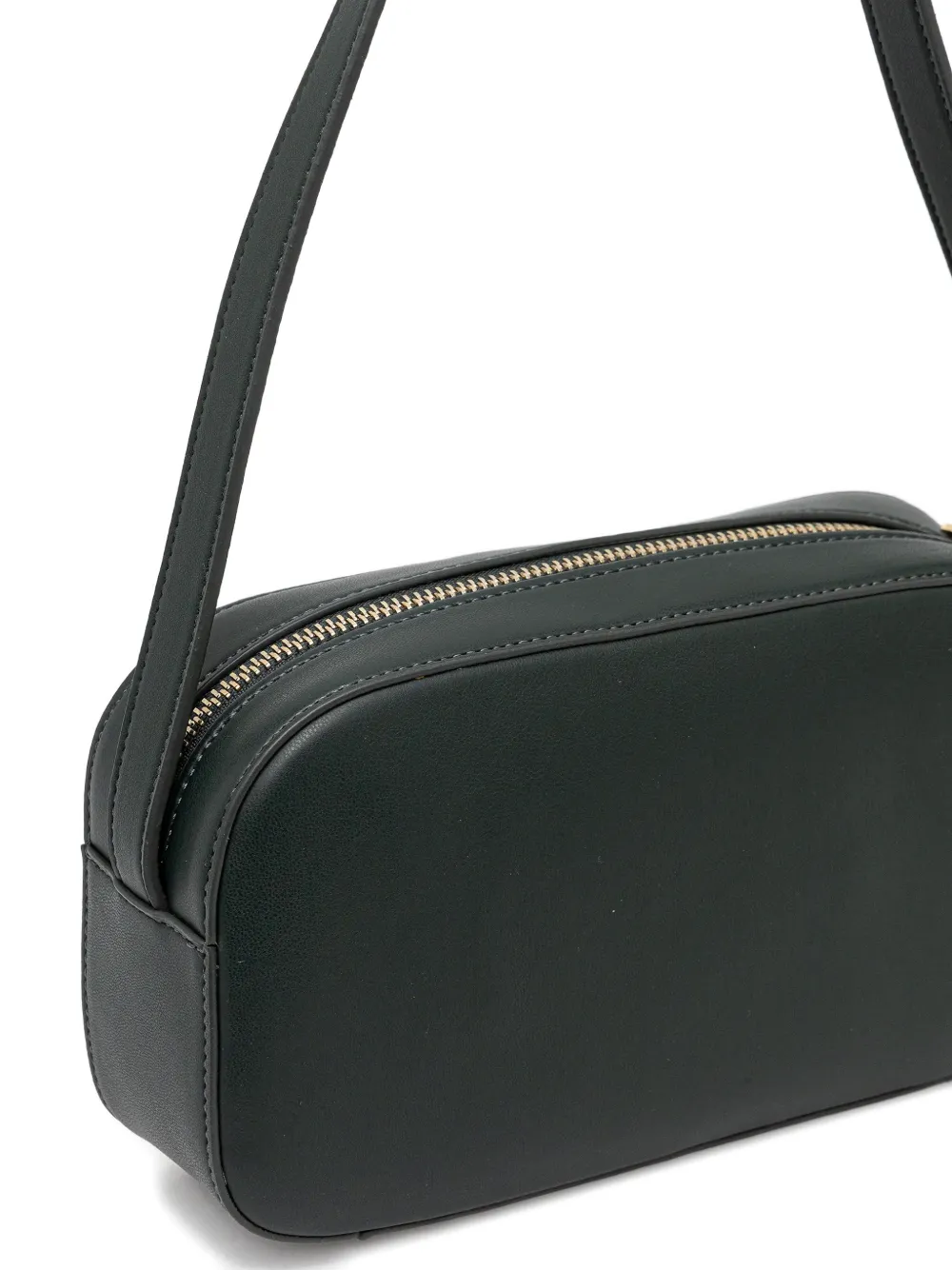 Зеленый тисненый логотип, застежка-молния, наплечный ремень, фурнитура золотистого оттенка, регулируемый ремень