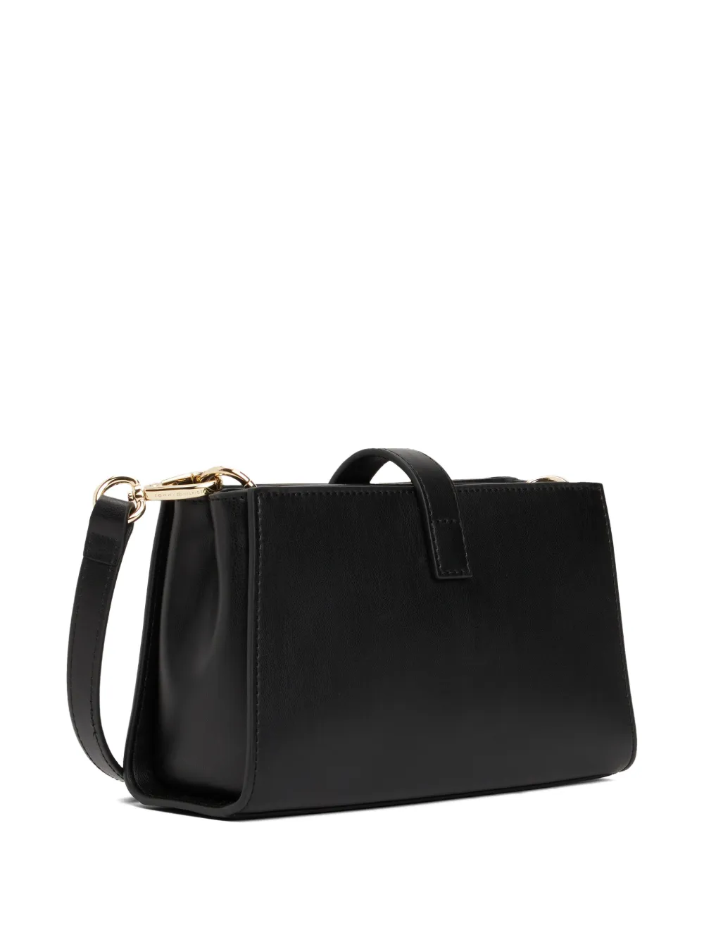 Черная сумка с верхней ручкой, фурнитура под золото, нашивка с логотипом, съемный плечевой ремень