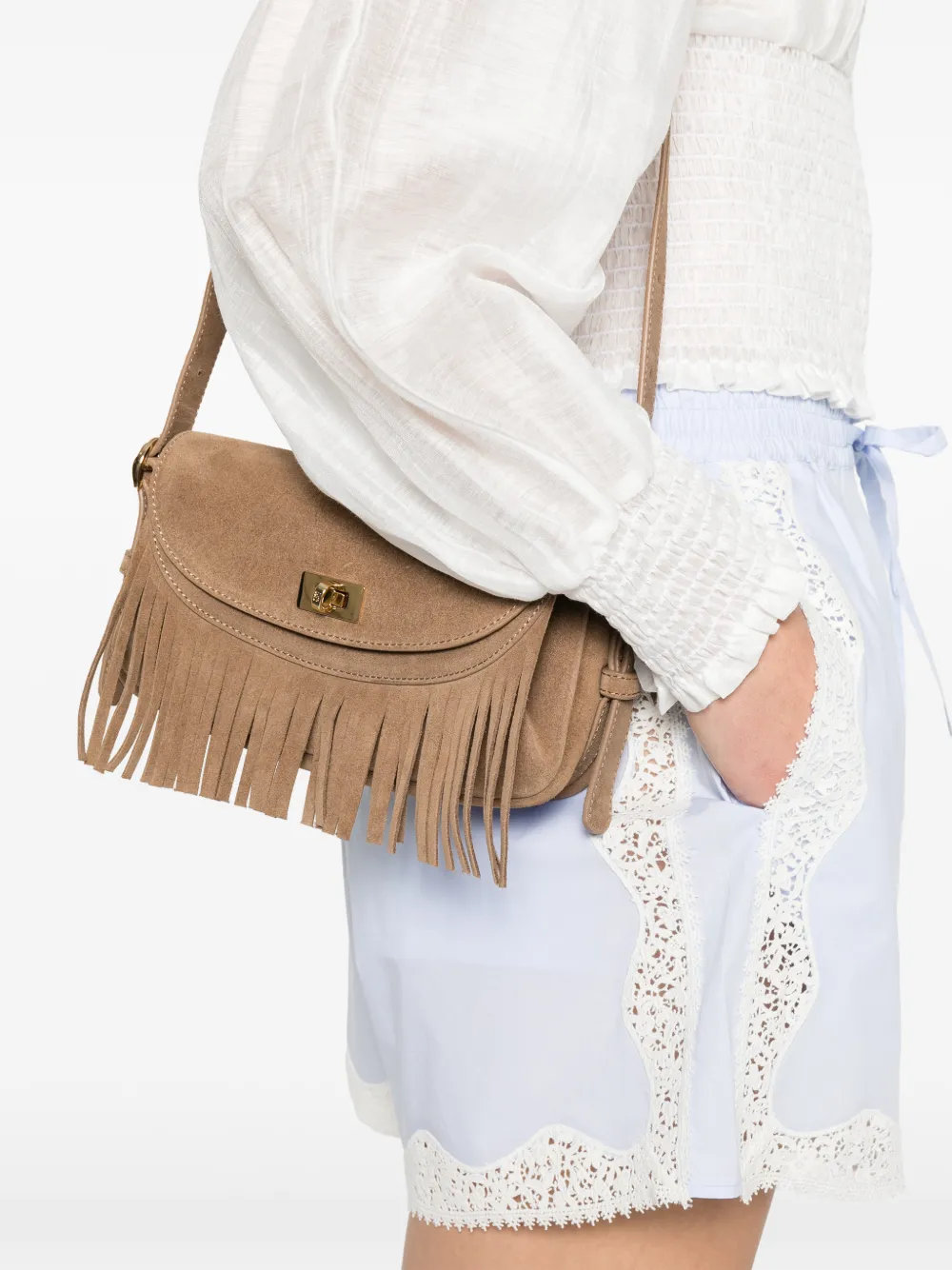 Мини-сумка через плечо с бахромой Sandro, коричневый
