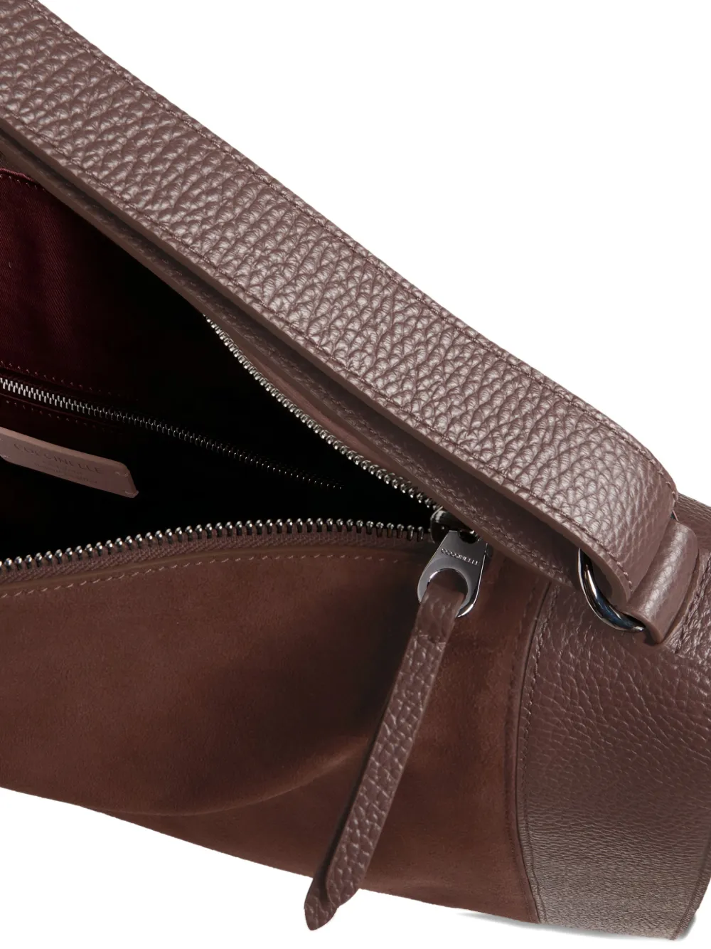 Коричневый тональный дизайн, боковая застежка-молния, закругленная пряжка, регулируемый ремешок, внутренний карман на молнии