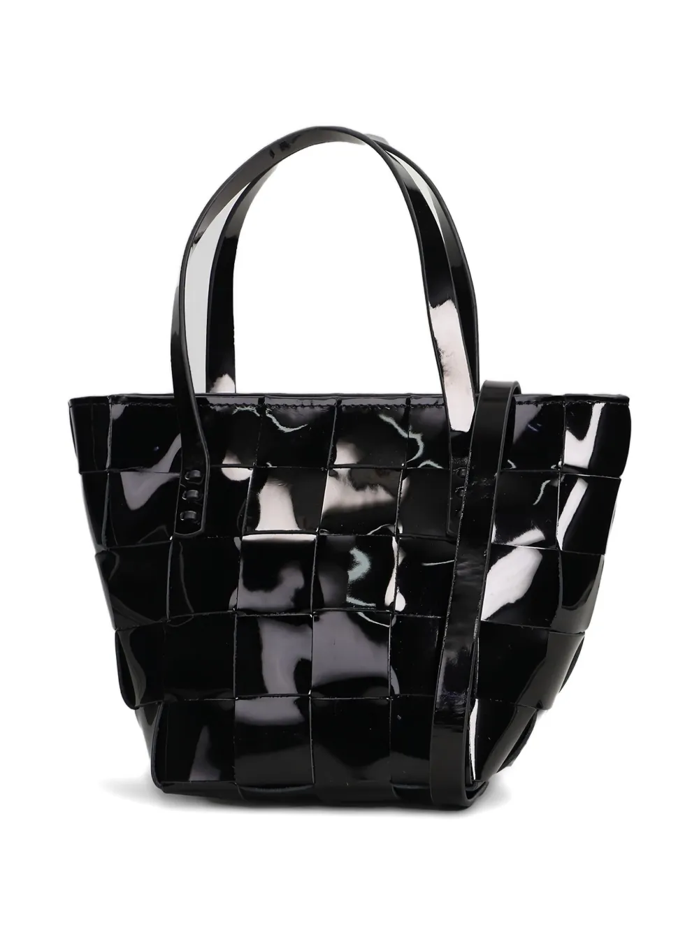 Черная плетеная сумка с верхней ручкой и плечевым ремнем