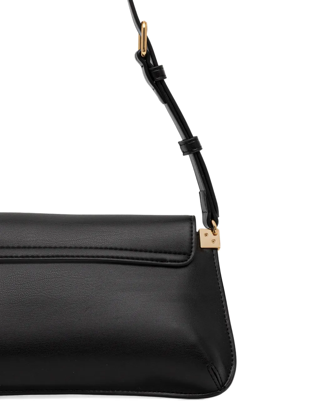 Черная сумка с застежкой на магните и логотипом золотистого цвета