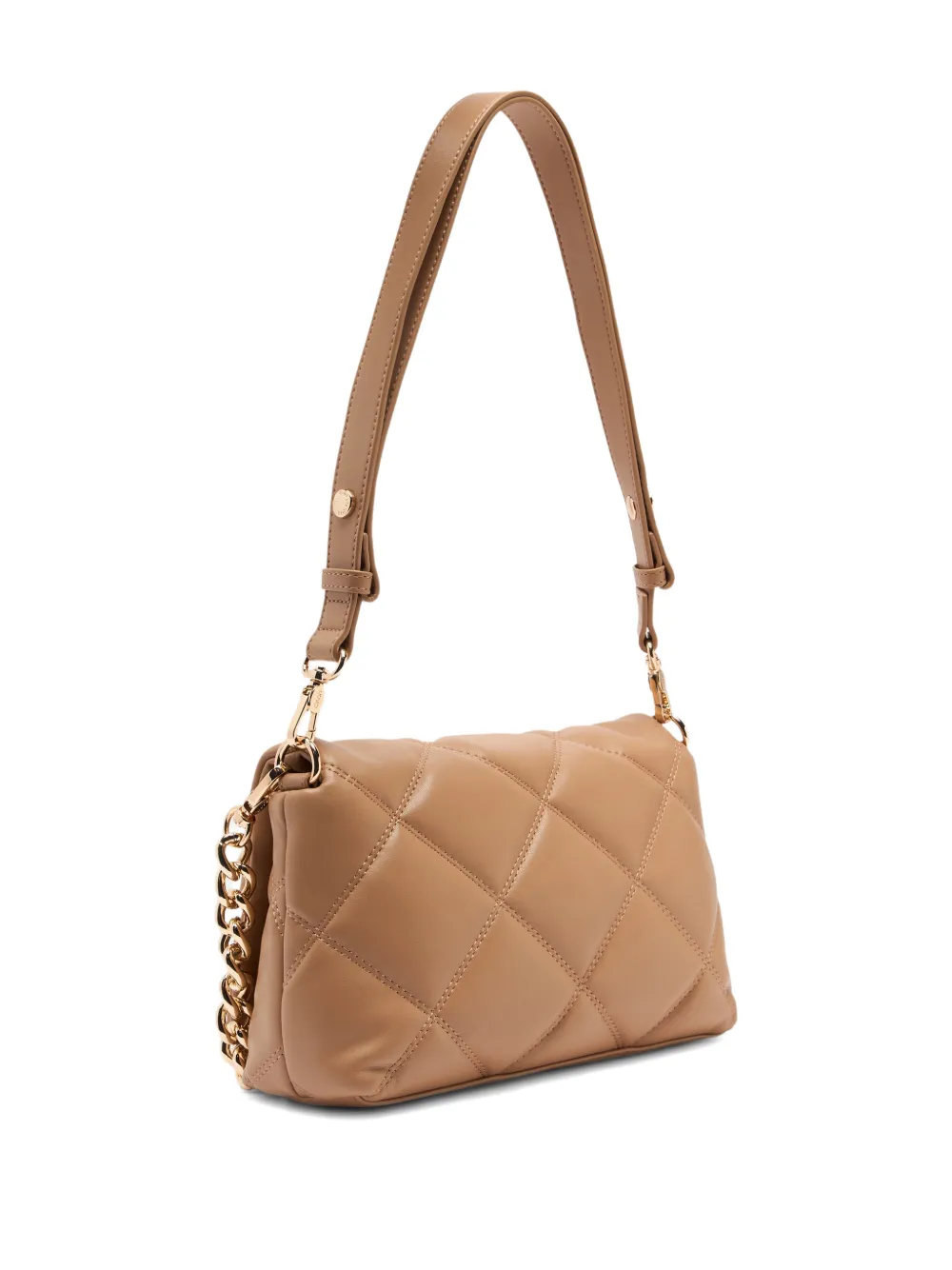 Светло-коричневый стеганый материал, металлический логотип, съемные ручки, функциональный накладной карман, магнитная кнопка