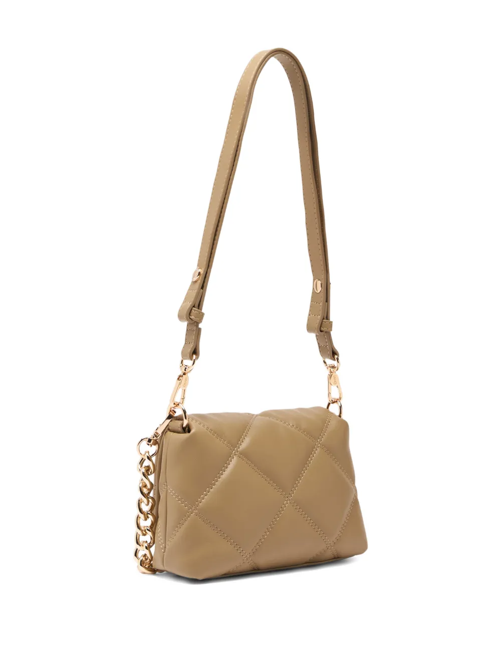 Светло-коричневая стеганая сумка с цепочкой, двумя съемными плечевыми ремнями, магнитной застежкой и утилитарными карманами