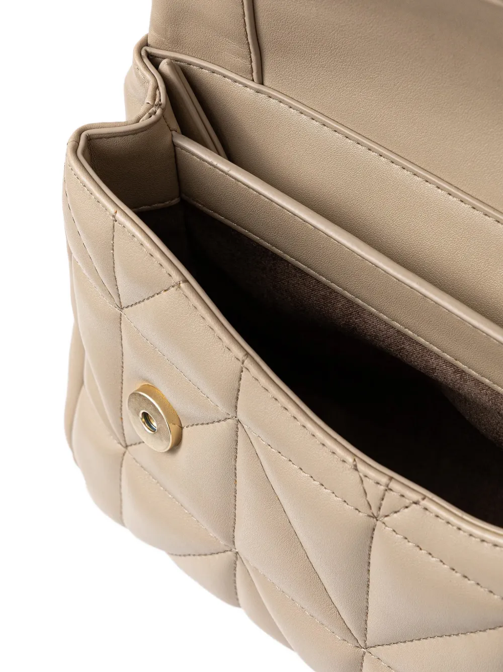 Бежевый стеганый ремень-цепочка с отделкой под золото, нашивкой-логотипом и внутренним открытым карманом