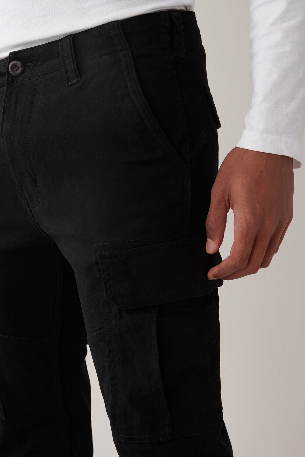 Брюки-карго из эластичного хлопка облегающего кроя Next, черный