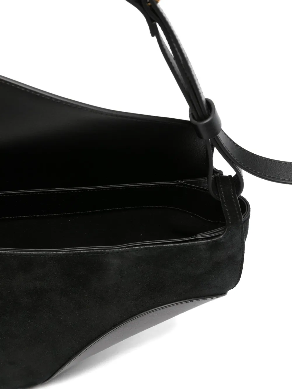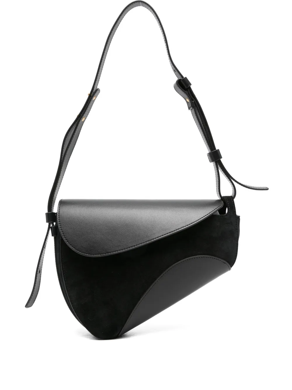 Черный кожа замшевые вставки регулируемый ремень изогнутый силуэт застежка-клапан