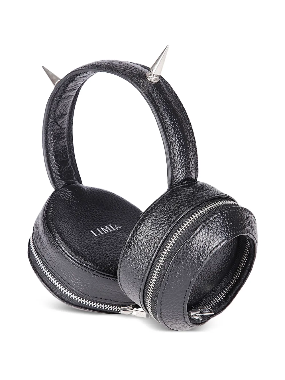Черная кожаная отделка молнией с шипованным декором