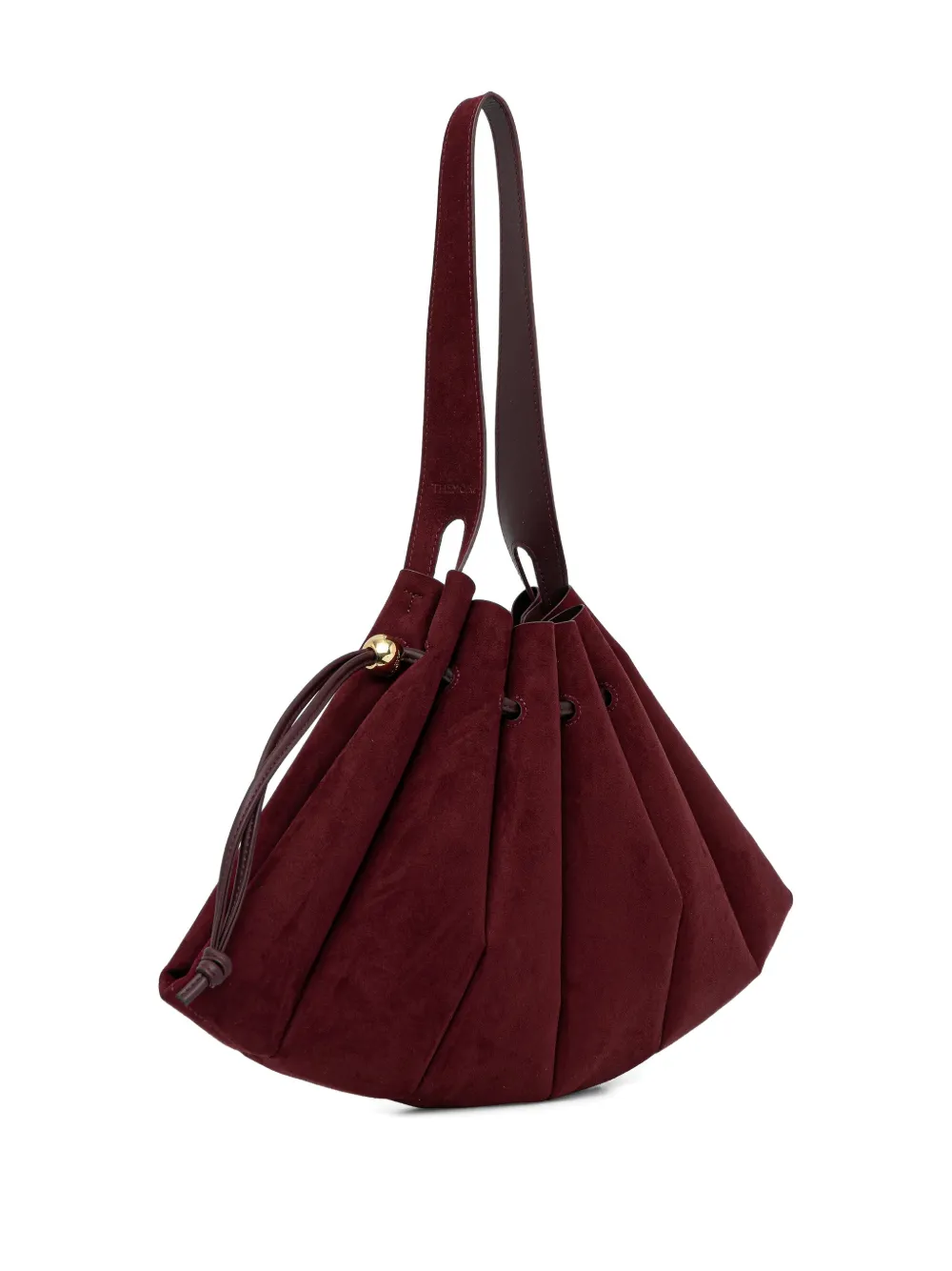 Сливовый (темно-фиолетовый) цвет, застежка на кулиску, верхняя ручка, фурнитура под золото