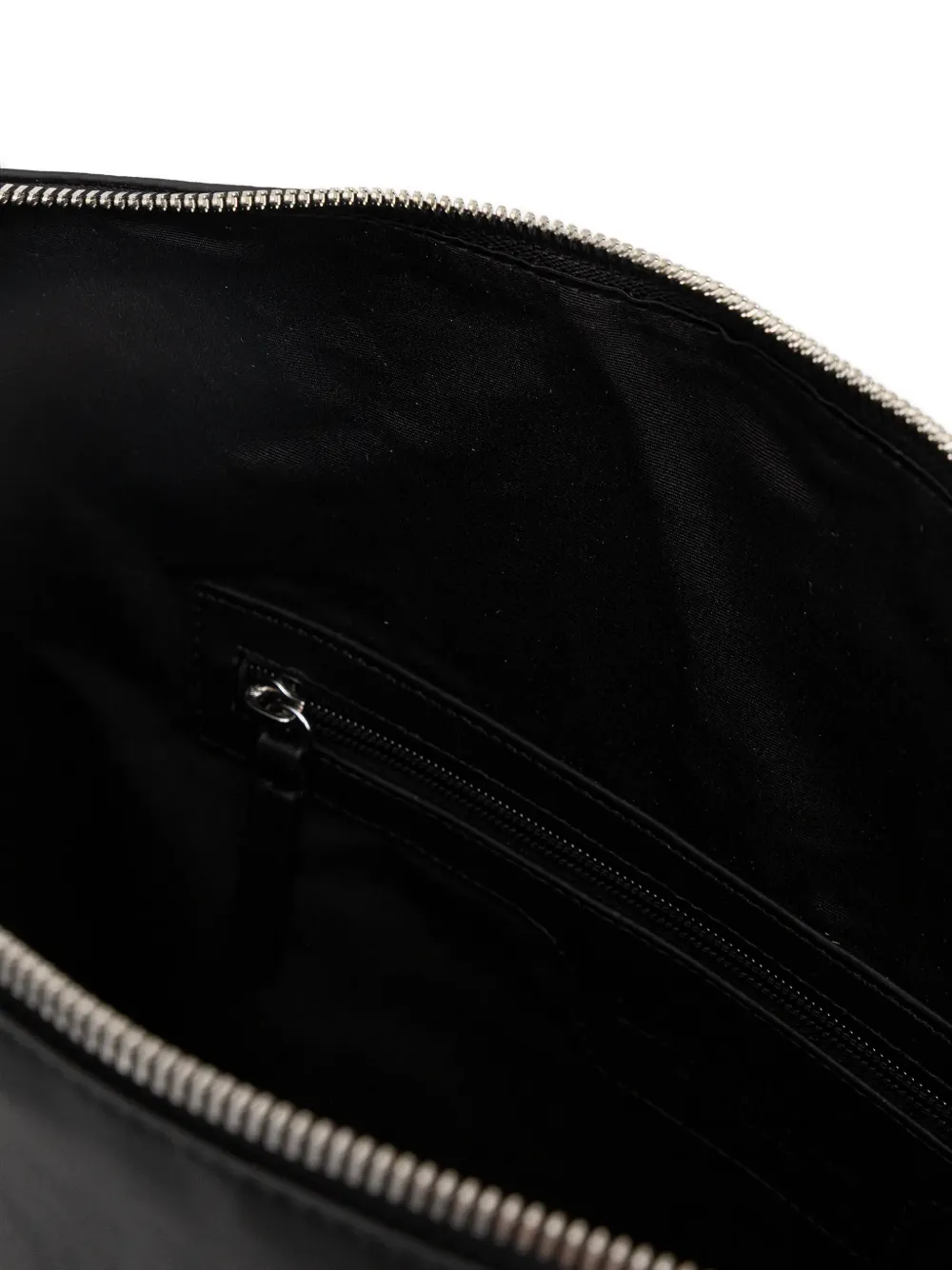 Черный цвет, тисненный логотип, застежка на молнии, съемный ремень, внутренний карман на молнии