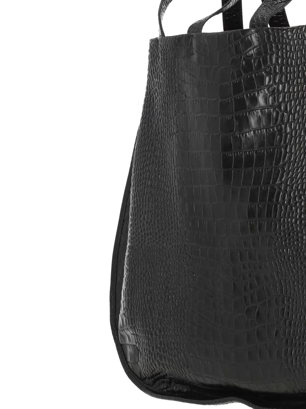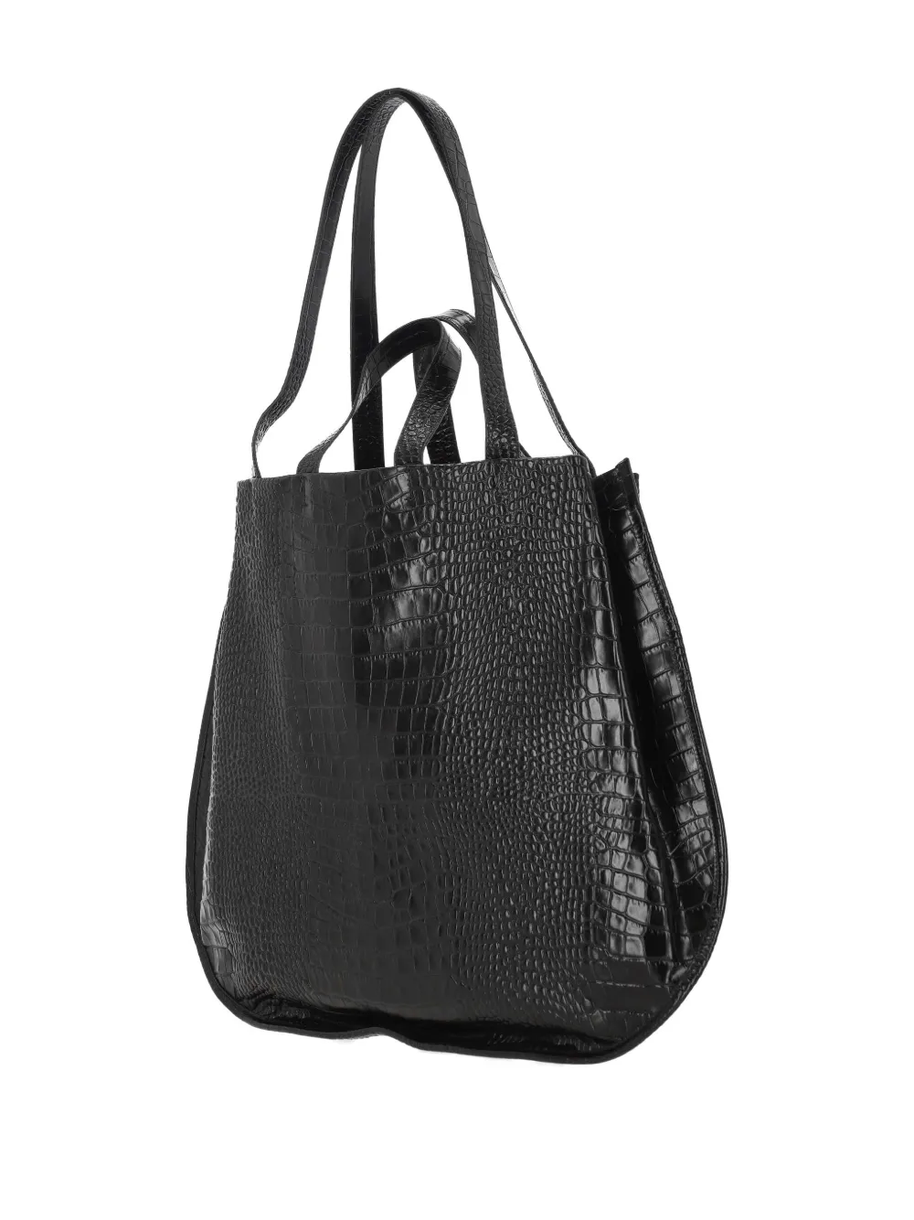 Черная сумка с тиснением под крокодила, четырьмя верхними ручками, секциями и внутренним карманом на молнии