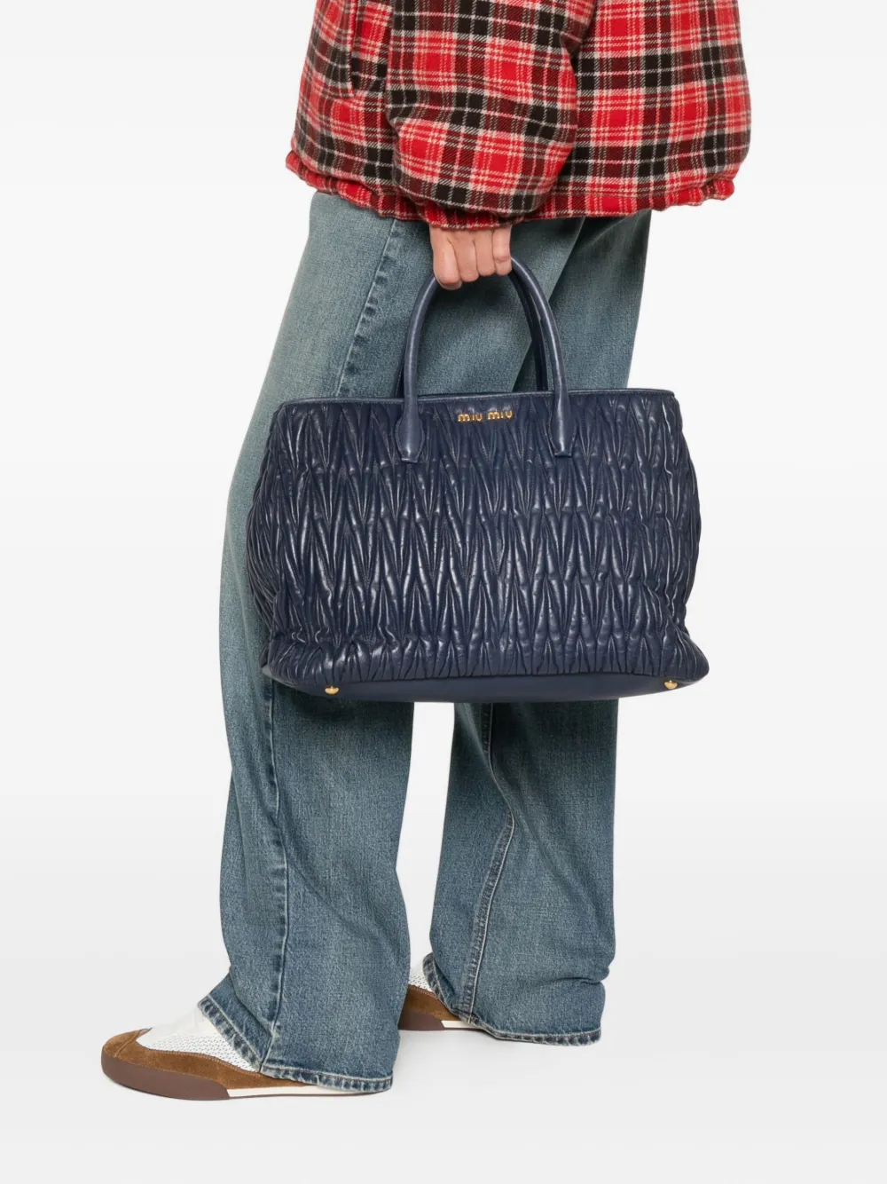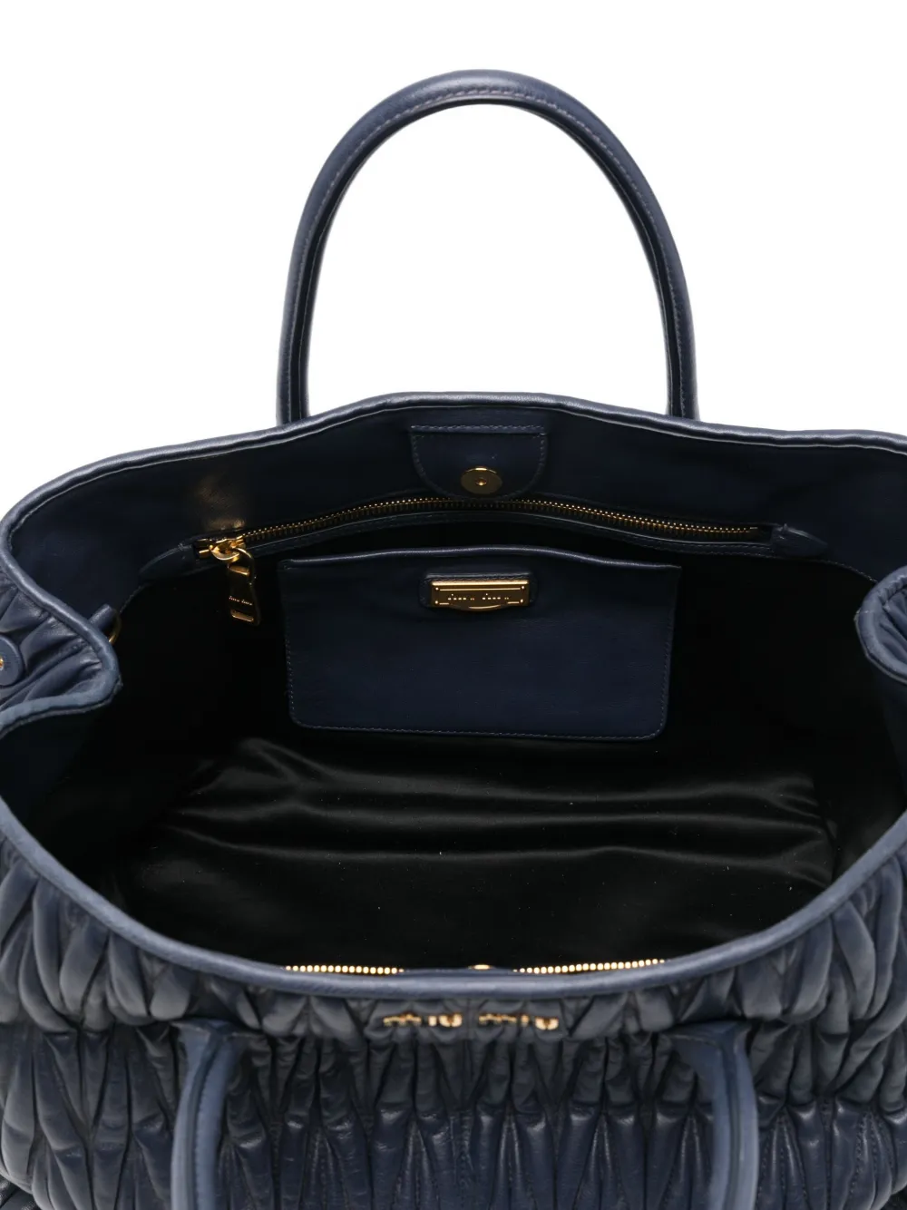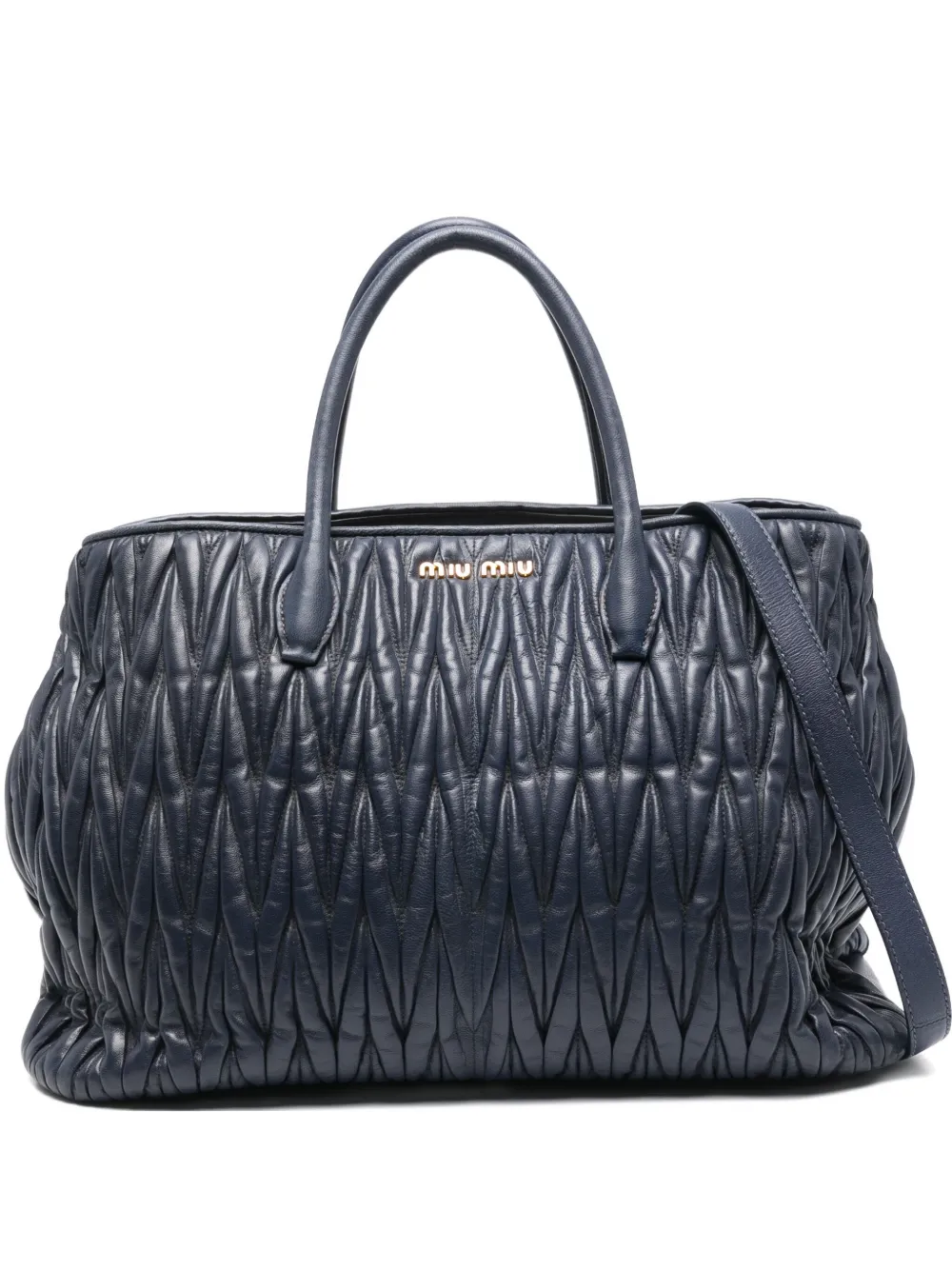 Стеганая сумка-тоут с логотипом Miu Miu, синий