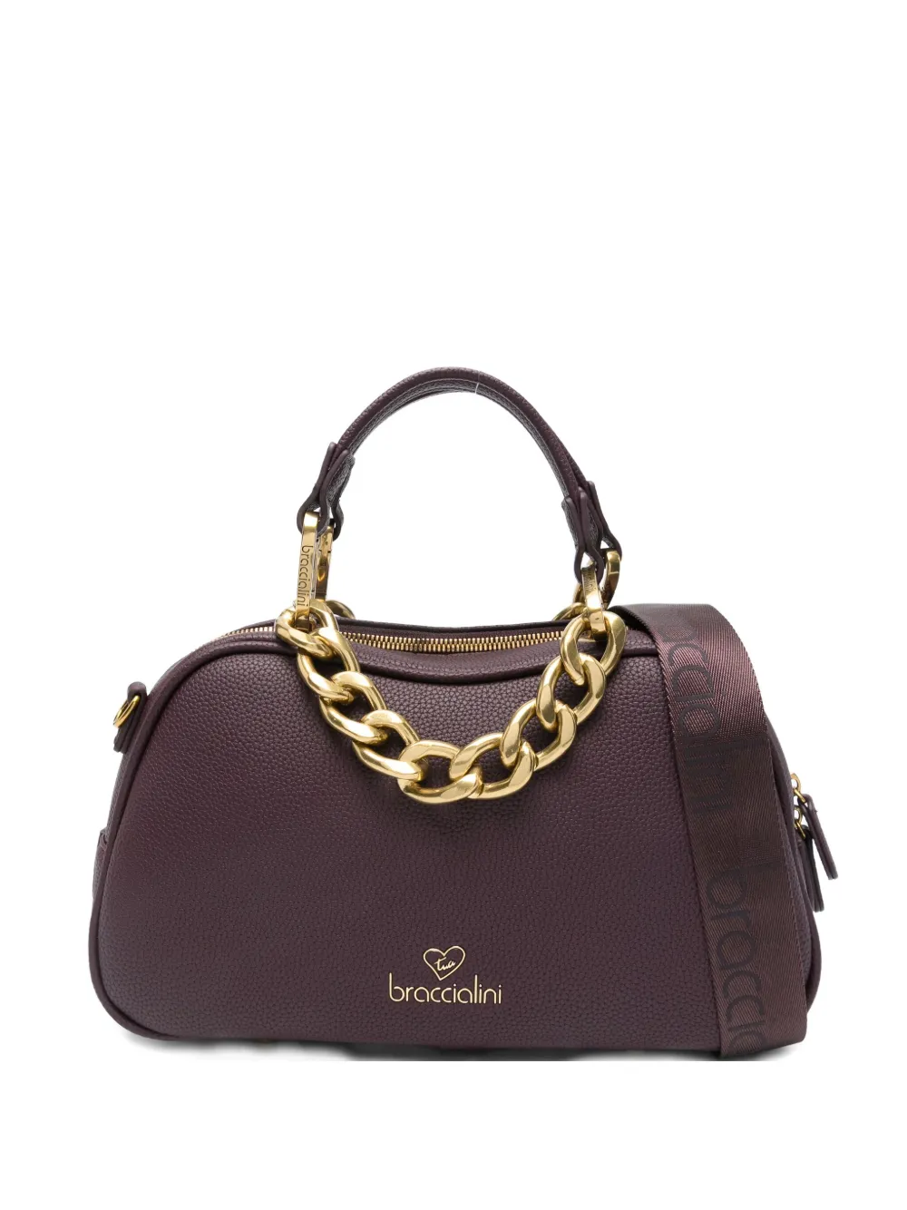 Фиолетовый декор из цепочки две верхние ручки застежка-молния сверху деталь с логотипом