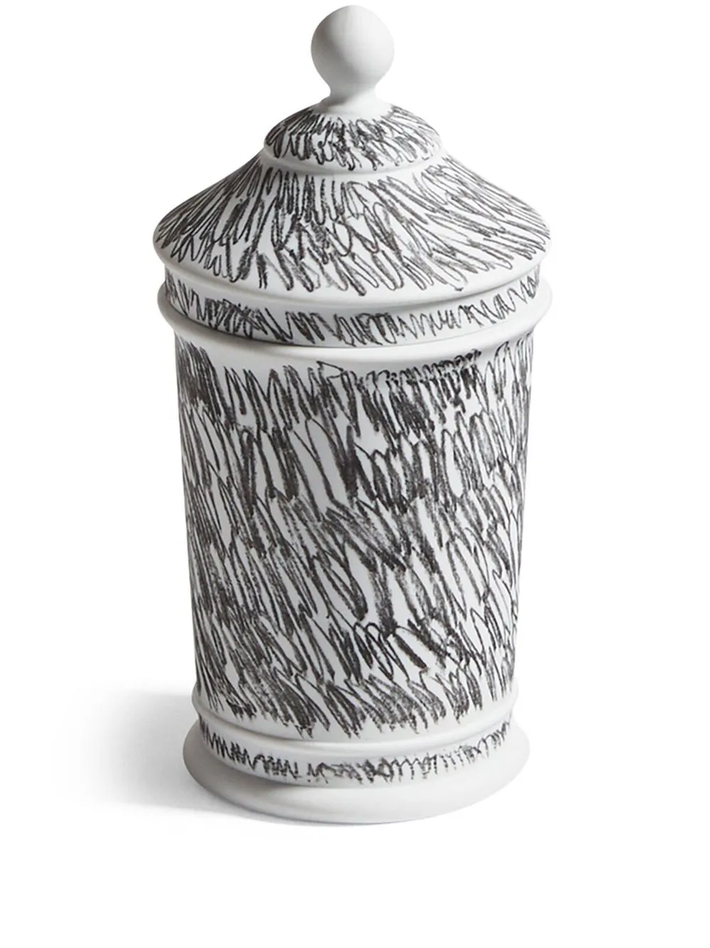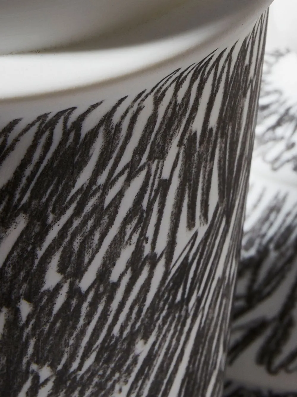 Черный/белый, фарфор, абстрактный принт, ручная роспись, крышка и цилиндрическая форма.