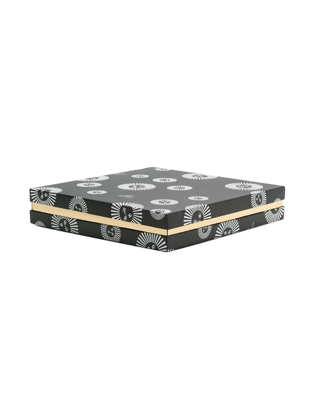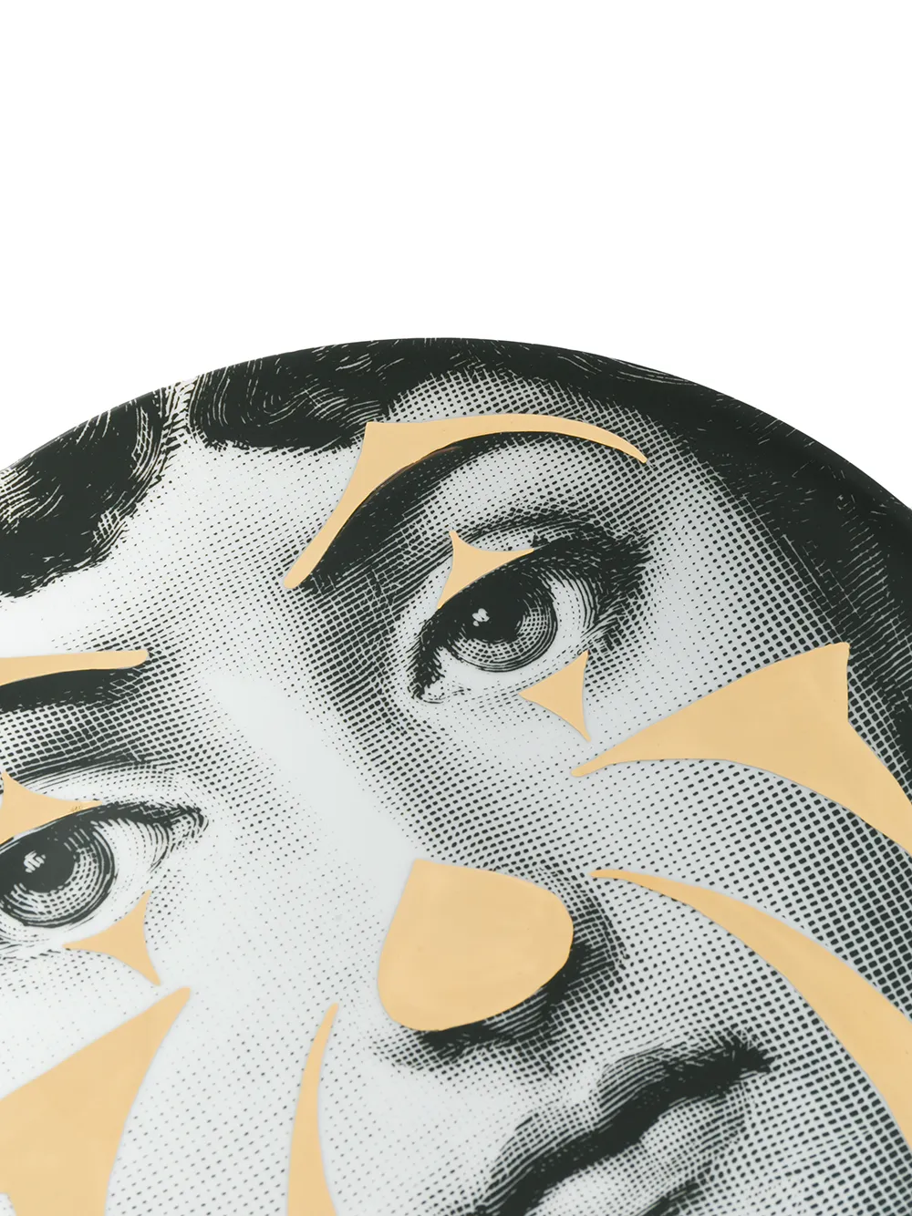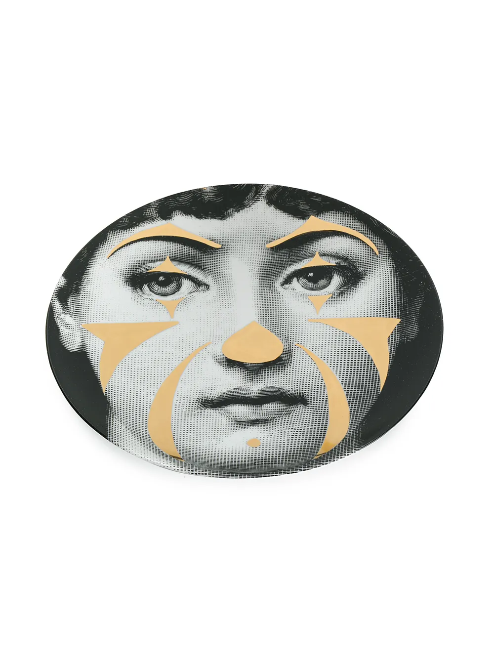 Черная с белым и золотистым керамическая тарелка с принтом от Fornasetti.
