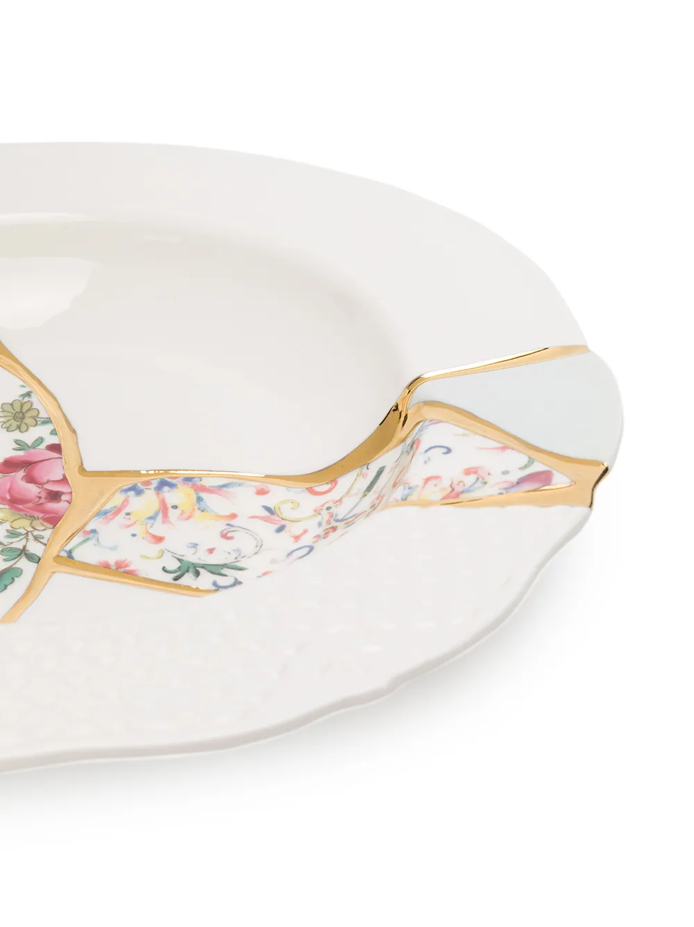 Десертная тарелка Kintsugi от Seletti. Зазубренные детали и стилистика пэчворк. Цвет: разноцветный.