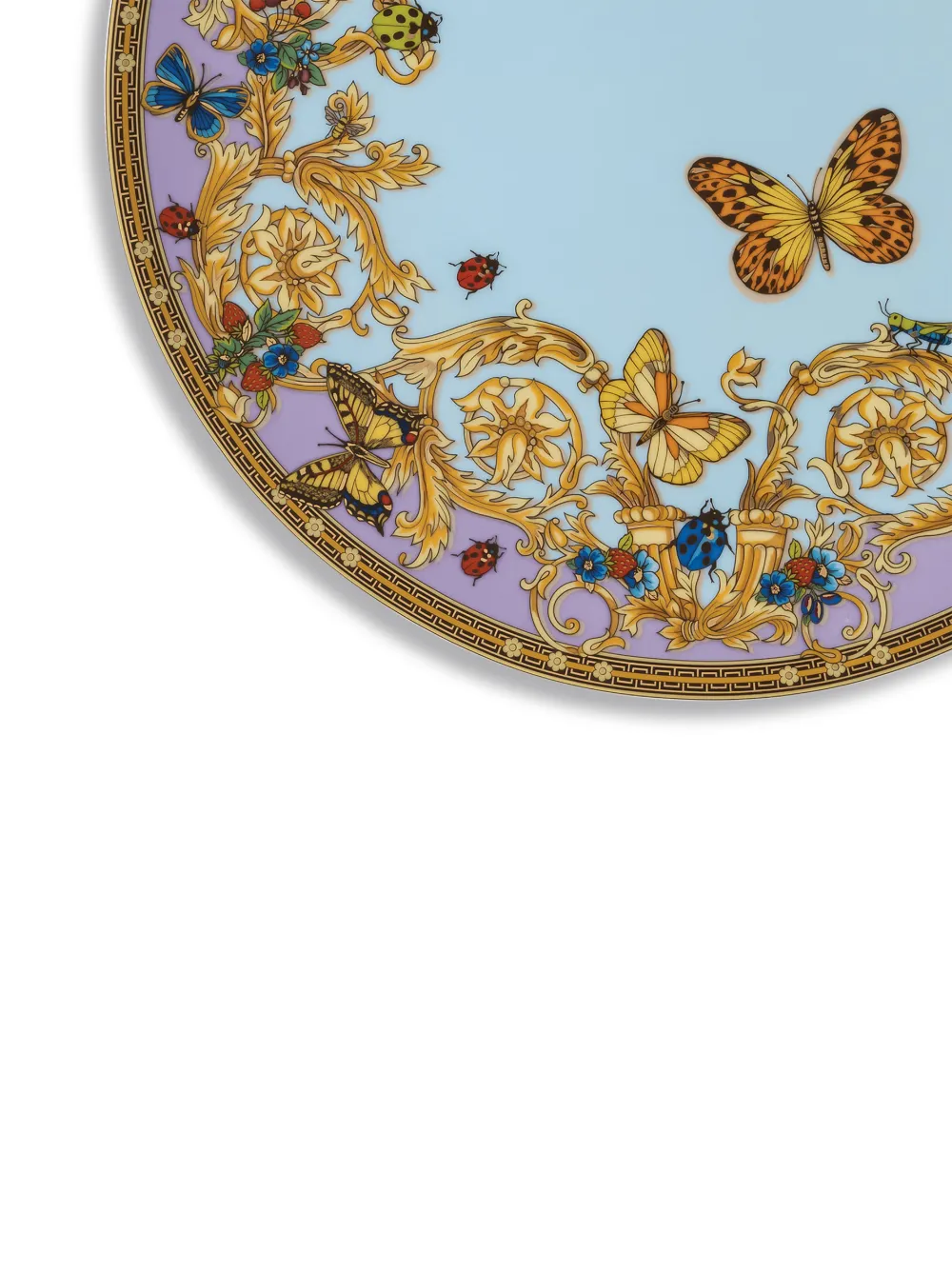Голубой, разноцветный, фарфор, ручная роспись, узор в стиле барокко, контрастные края и модель круглой формы.