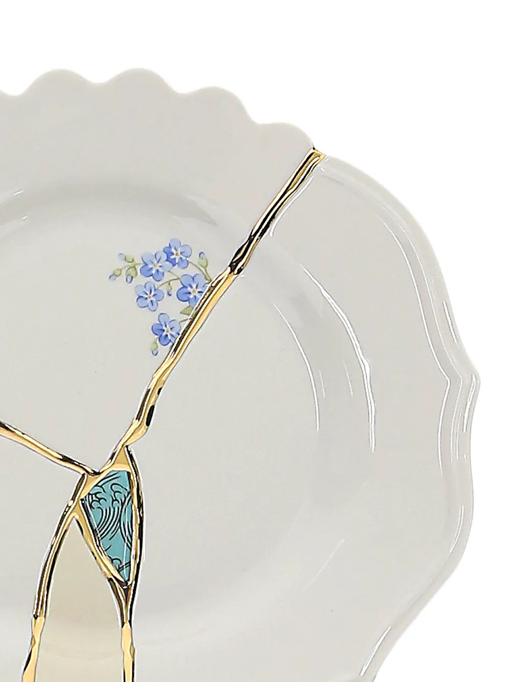 Тарелка с эффектом трещин от Seletti. Цветочный узор. Цвет: белый.