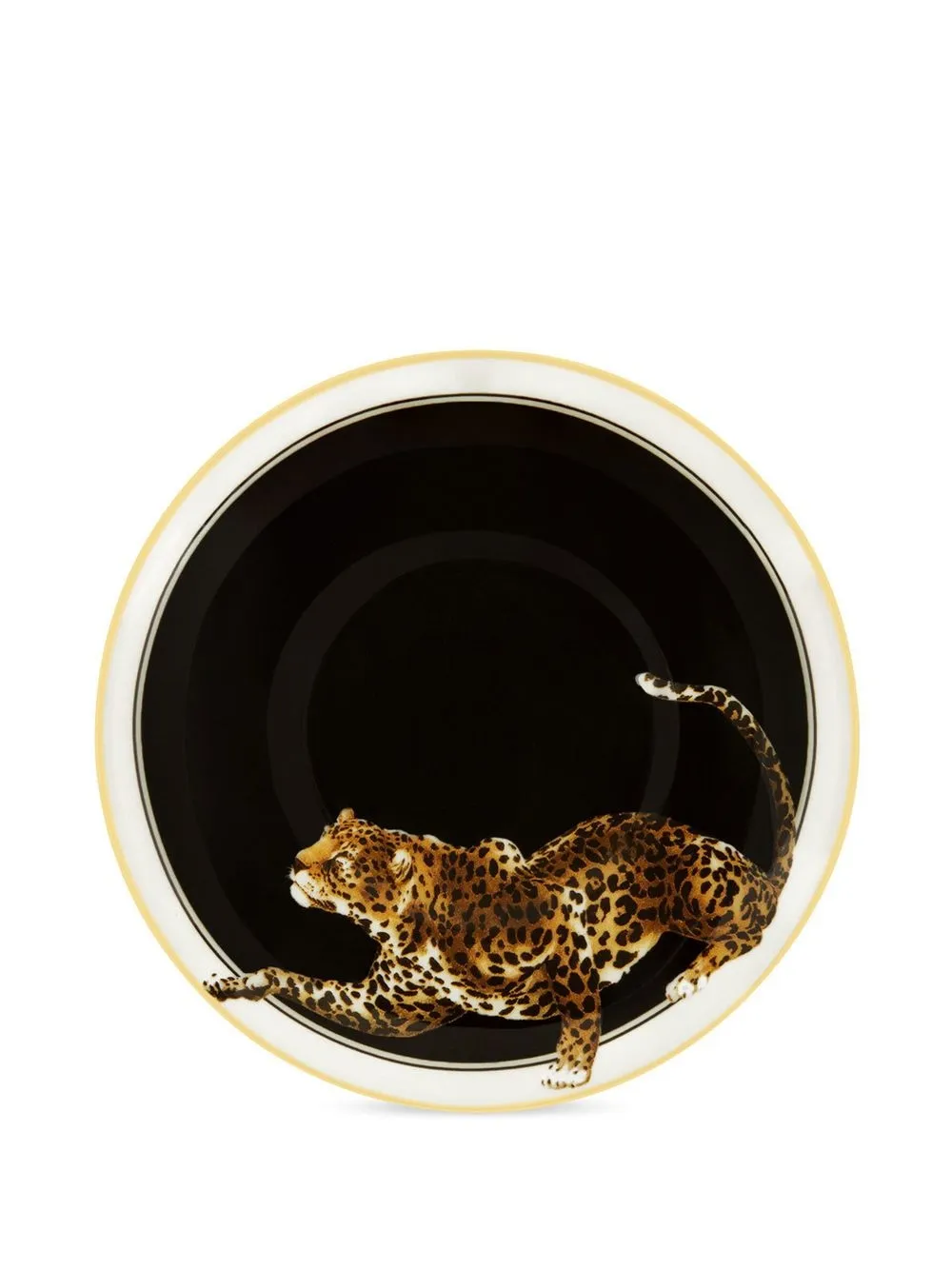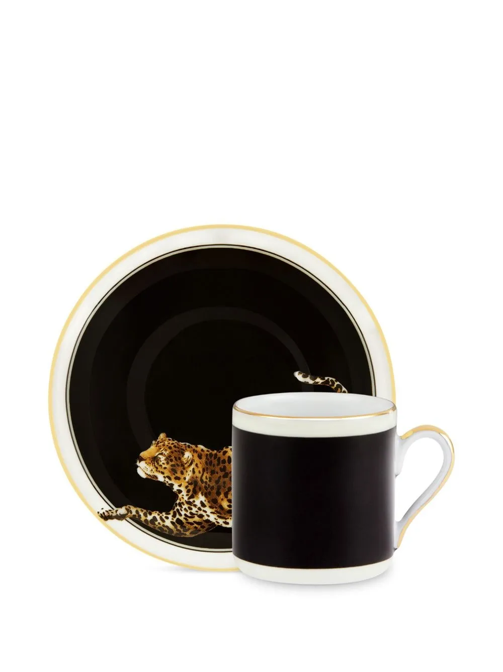 Черный/разноцветный, фарфор, принт с изображением тигра, блюдце в комплементарной расцветке и круглая ручка.