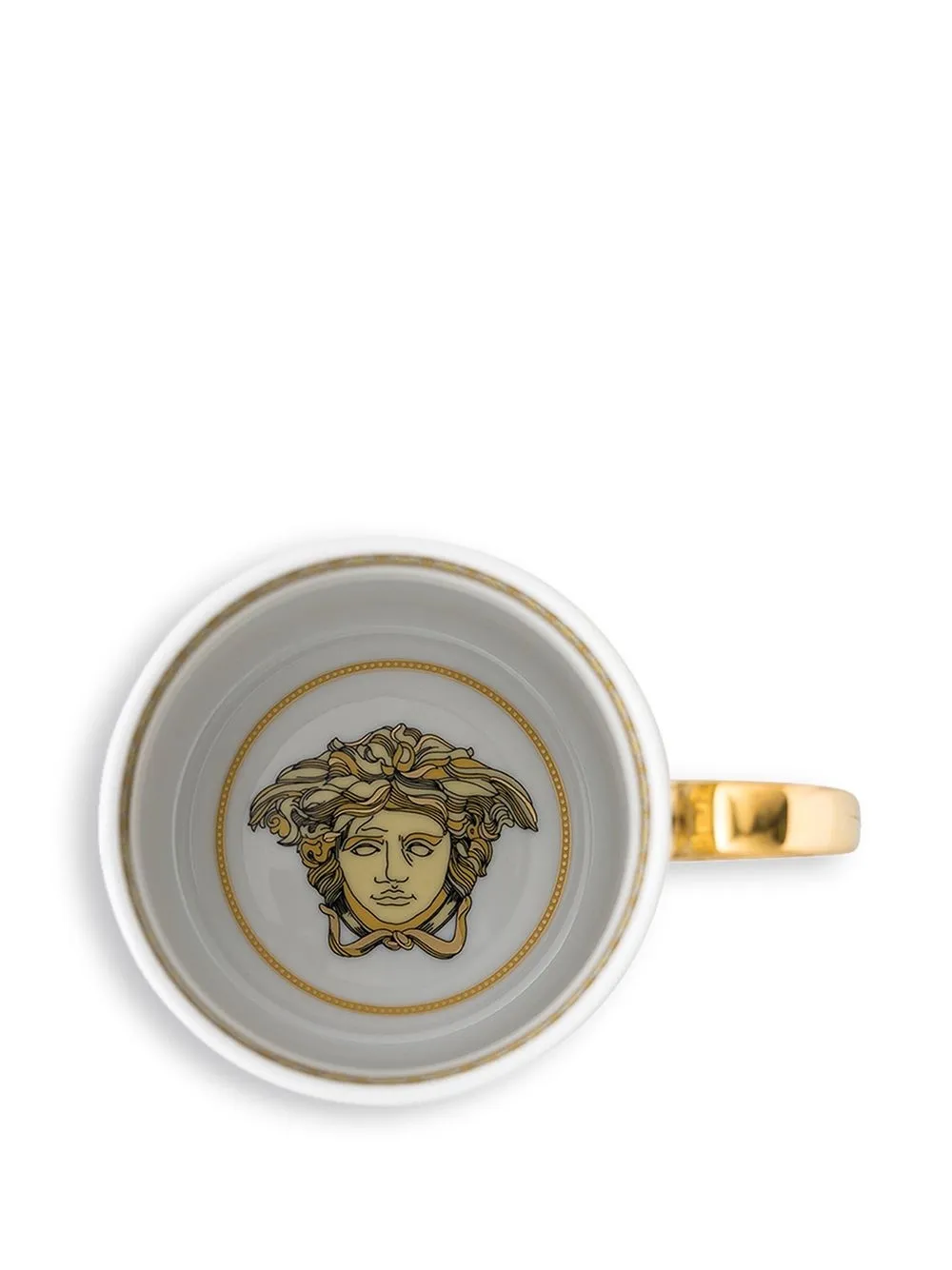 Кремовый, золотистый, фарфор, узор Medusa Head, круглая ручка и подходит для мытья в посудомоечной машине.