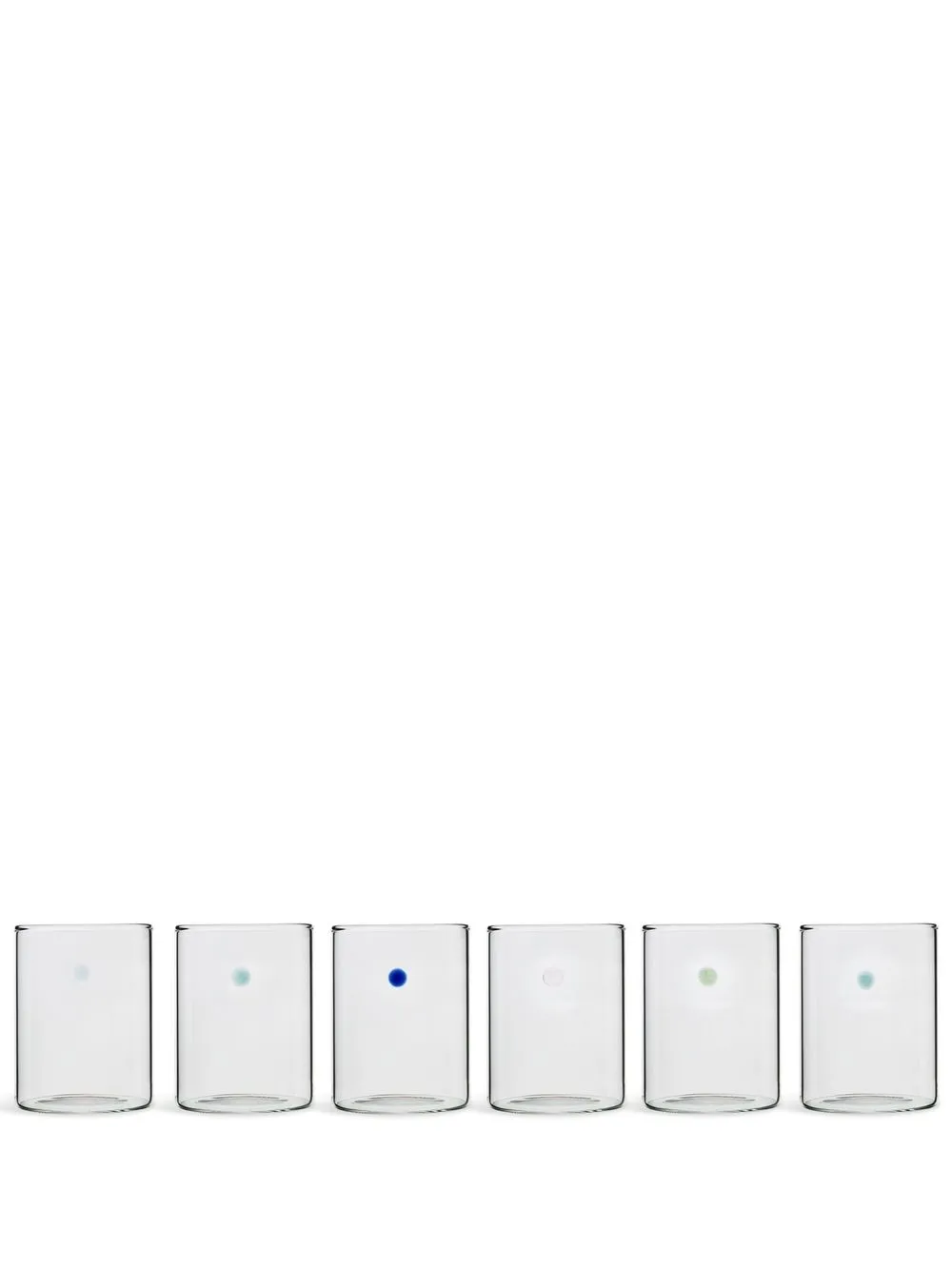 Белый/разноцветный, стекло, прозрачные линзы, принт в горох, цилиндрический дизайн и набор из шести предметов.