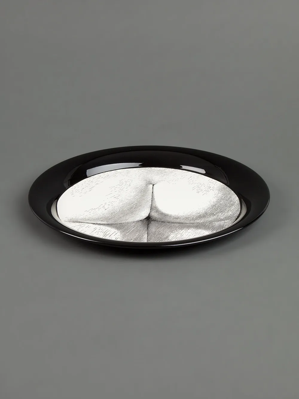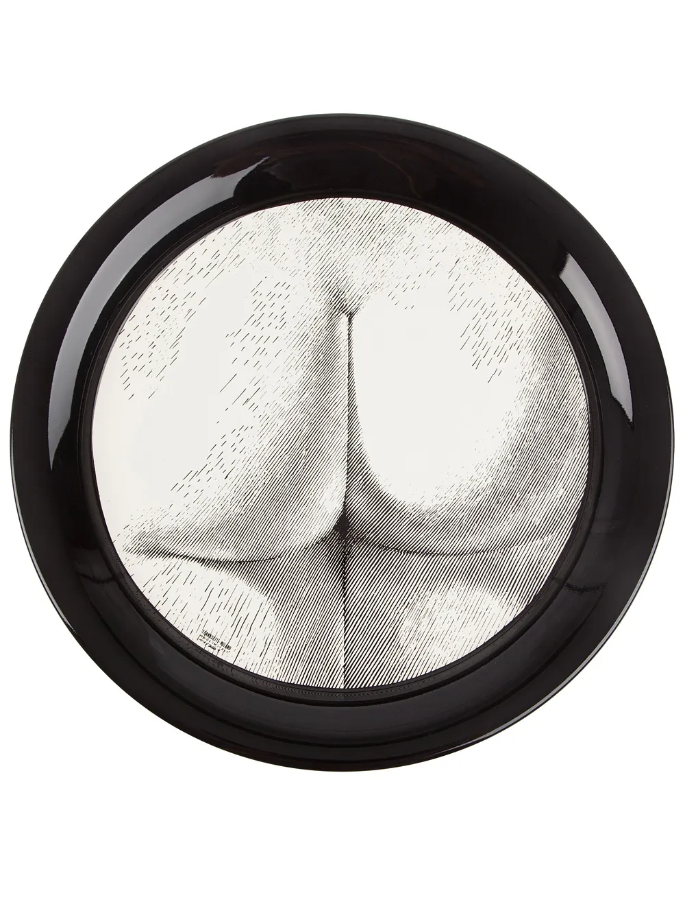 Черно-белый металлический поднос с рисунком от Fornasetti.