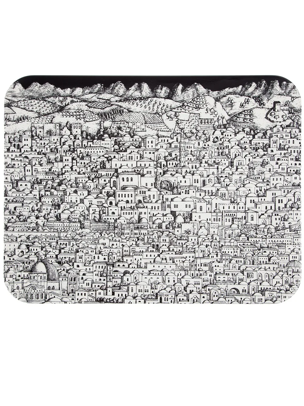 Черно-белый деревянный поднос 'Jerusalem' от Fornasetti.