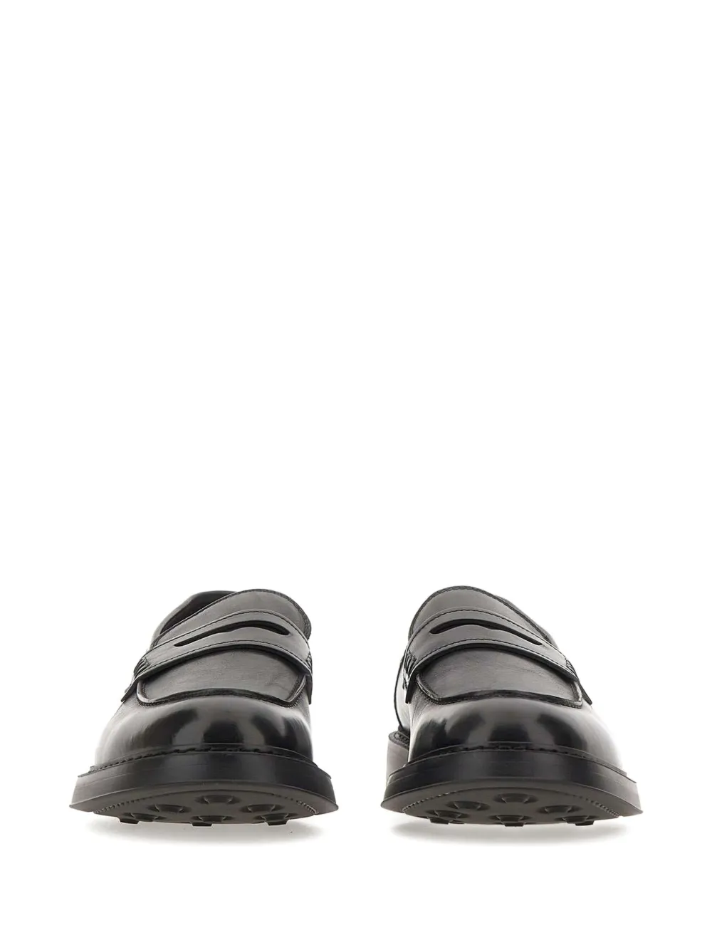 Верх из черной кожи, резиновая подошва, перемычка пенни