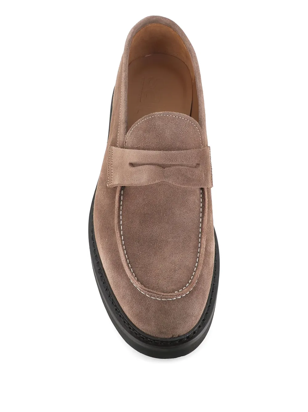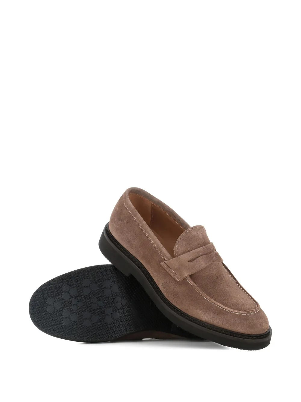 Коричневые мокасины из замши с лоферным язычком, прострочкой и резиновой подошвой