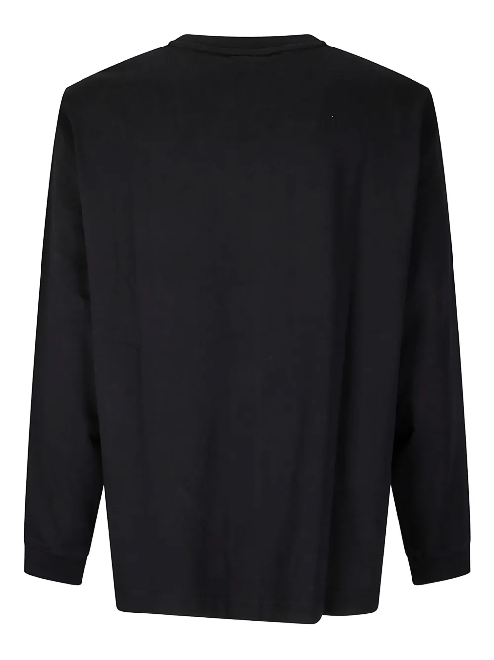 Черный круглый вырез длинные рукава принт с логотипом на груди