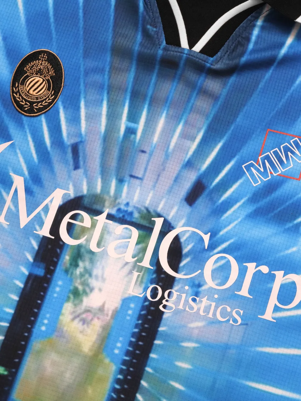 Синий мотив с логотипом, классический воротник, отделка в рубчик