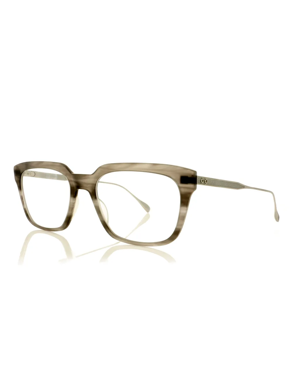 Серебристая фурнитура, прозрачные линзы, серые квадратные оправы, фактурные дужки, носовые упоры. Все очки с сайта FARFETCH продаются без диоптрий. К очкам прилагается защитный футляр.
