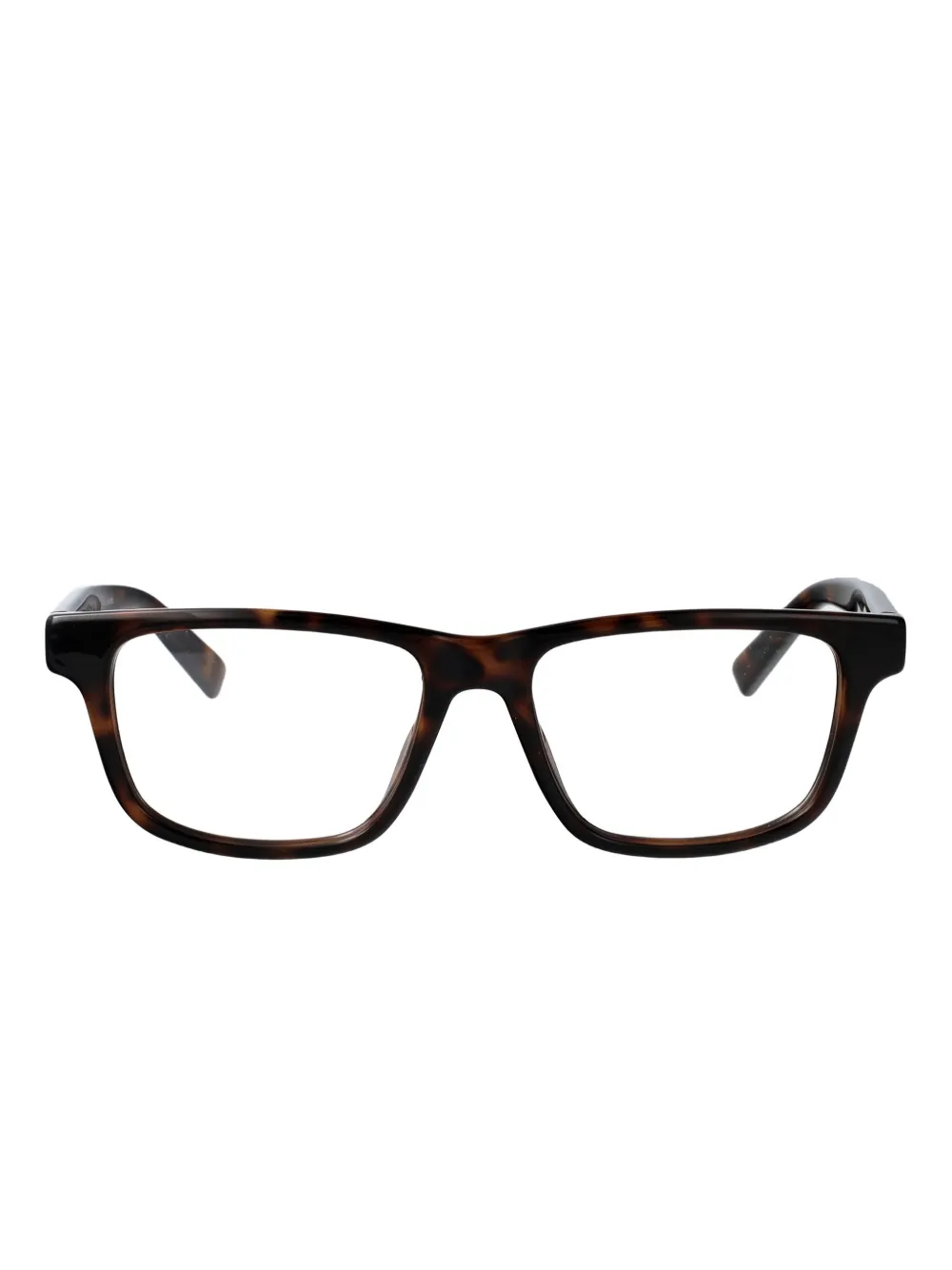 Коричневая оправа прямоугольной формы, логотип, регулируемые носовые упоры. Очки идут в защитном футляре. Все очки на FARFETCH продаются как оправа без диоптрий.