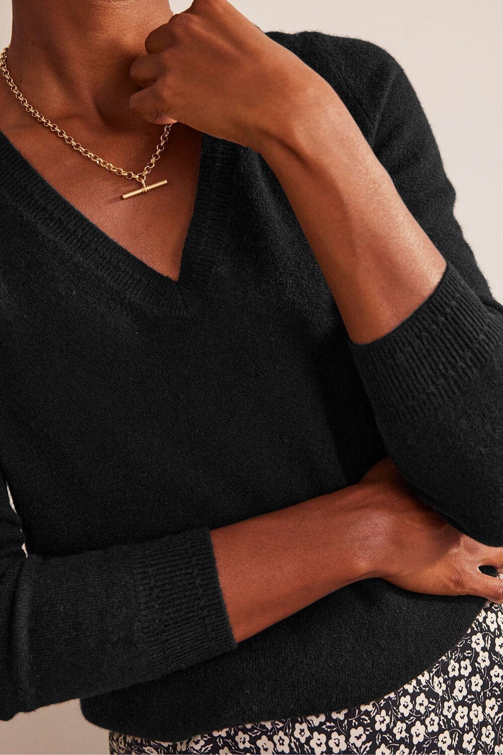 Кашемировый свитер Eva с V-образным вырезом Boden, черный